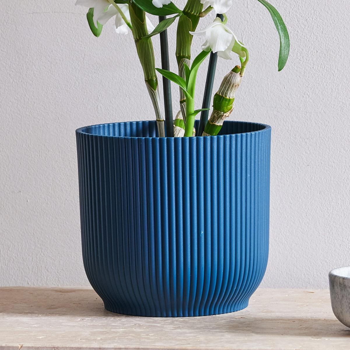 Beards & Daisies Dendrobium Bamboo Orchid House Plant in Vibes Pot Plastic Navy