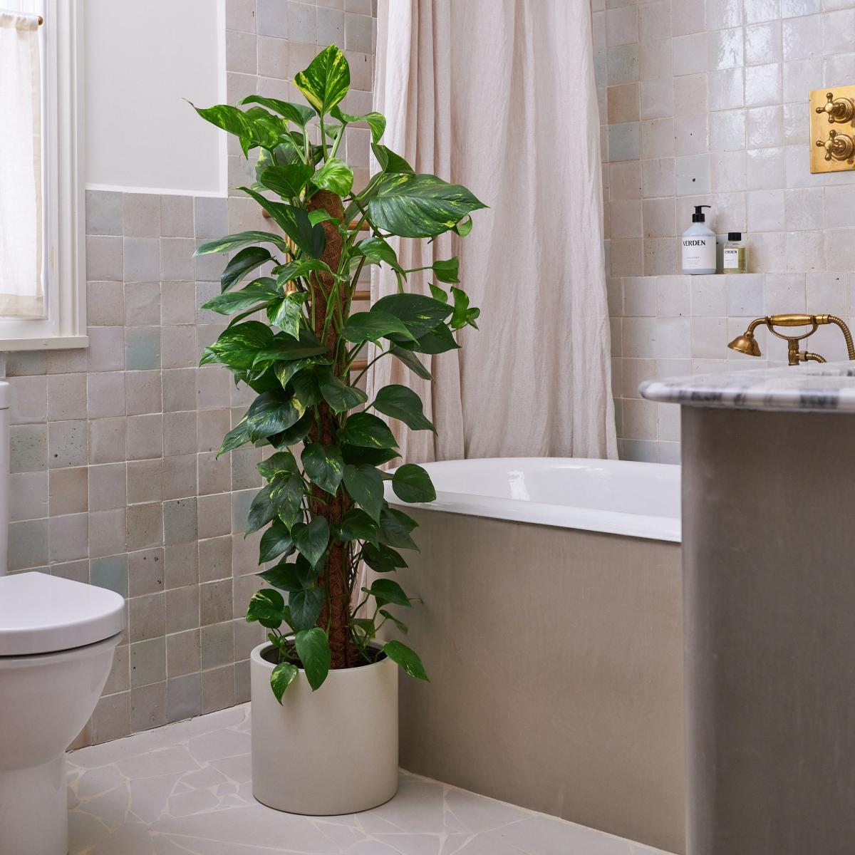 * Light: Enjoys bright, indirect light* Water: Water when the top 2 inches of soil are dry to touch* Expert level: I'm perfect for those new to plant parenthood* Pet friendly: Not pet friendly- keep away from furry friends and little people* Air purifying: I remove the nasties lurking in your room This is a species of plant from the Araceae family, native to Mo'orea in the Society Islands of French Polynesia. A super hardy houseplant that thrives on minimal attention, making it great for new plant parents. The Devil’s Ivy can thrive in low light conditions, perfect for any room in your home. With pretty variegated green and yellow leaves, this version is trailed up a moss pole. Paired with our perfectly fitting Earthenware pot. * How to keep me happy:* Light: Enjoys bright, indirect light* Water: Water when the top 2 inches of soil are dry to touch* Expert level: I'm perfect for those new to plant parenthood Please note:As this is a living product your plant may vary to the one photographed. Plant height measurement includes the pot. Width measurement is for the width of the pot only; width of the plant may vary.