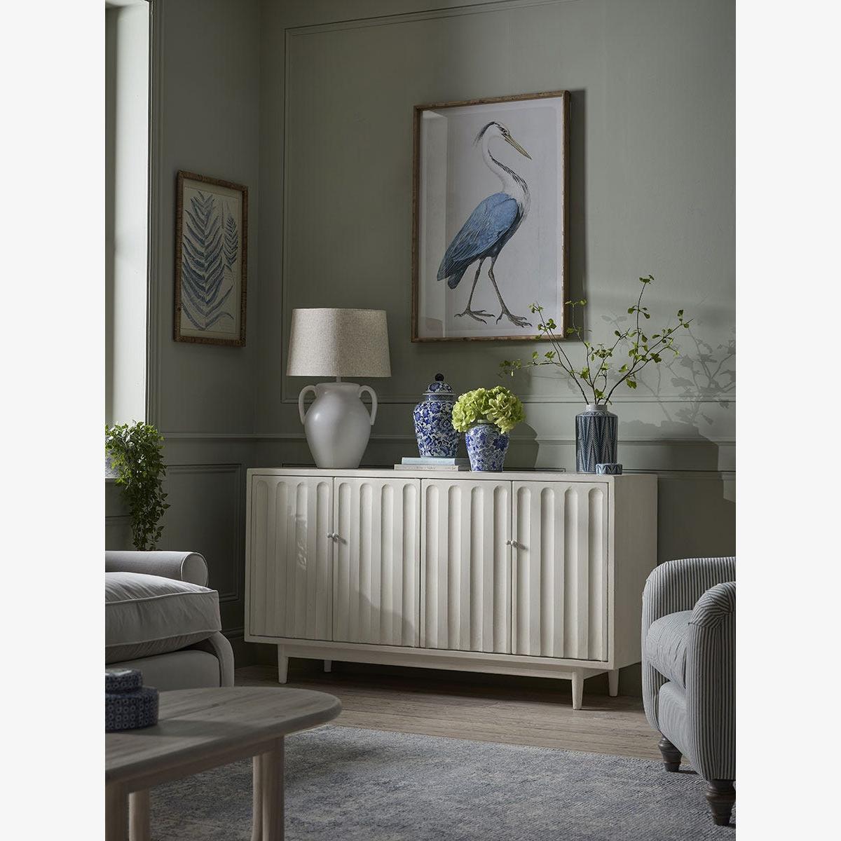 With a simple silhouette, our Beata sideboard is crafted from a recycled pine that is painted white, creating a gently distressed finish for a relaxed look in your home. The cupboard doors have a wonderful reeded design that that adds a gentle elegance to the piece, providing a softness that works wonderfully within our French Blue trend and in a home that embraces a laid-back and cool toned palette.