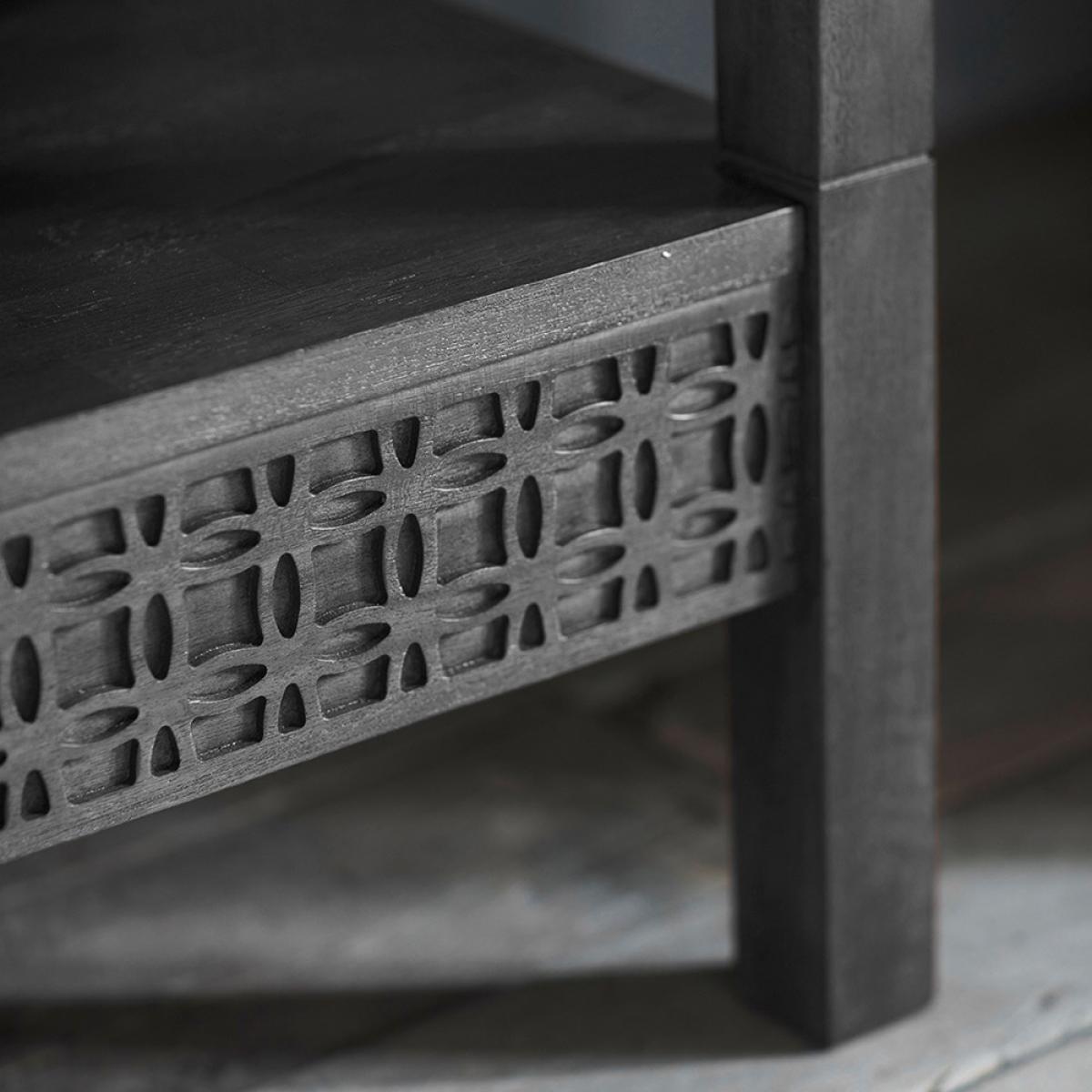 Store your clothes in style with the Beatnik Open Wardrobe. Made from Mango wood and mixed timber veneers, the on trend black finish allows the natural grains of the wood to subtly come through. The signature patterned fret detail can also be seen at the top of the drawers, finishing off this beautifully crafted piece of furniture. Partner with the four poster Beatnik Bed to create your perfect boho boudoir!.