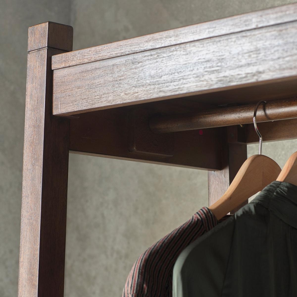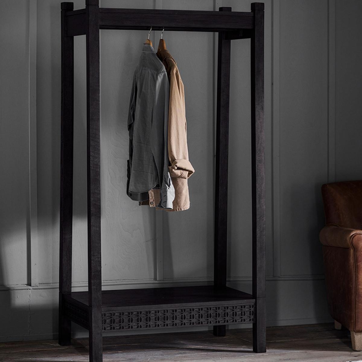 I love this piece for its clean, industrial aesthetic, making it a versatile addition to both contemporary and minimalist interiors. The black finish adds a touch of urban chic, while its straightforward design is perfect for creating a functional yet stylish wardrobe solution. It works particularly well in spacious bedrooms or dressing rooms where you want to keep things uncluttered. For styling, consider using it in a monochrome or neutral palette, and add open baskets or stacked boxes on the bottom shelf for extra organisation. It’s practical for everyday use and acts as a statement piece that enhances the room’s character without overwhelming the space.