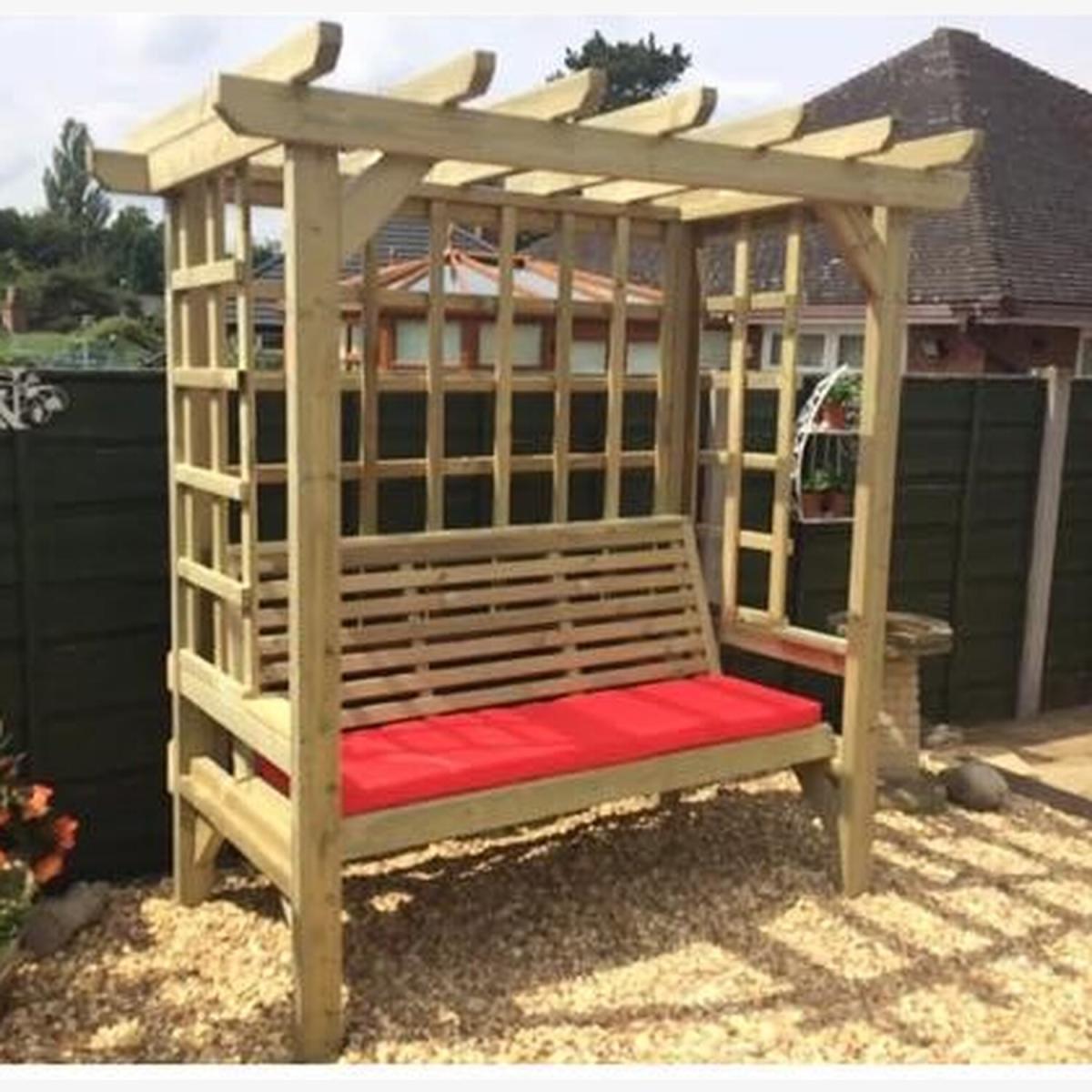 This Trellis Arbour is a very popular product of ours and we believe that although you may find other arbours that can compete on price, you will struggle to find any that can compete for pound when it comes to overall quality and value for money. Please note seat cushions are not included.