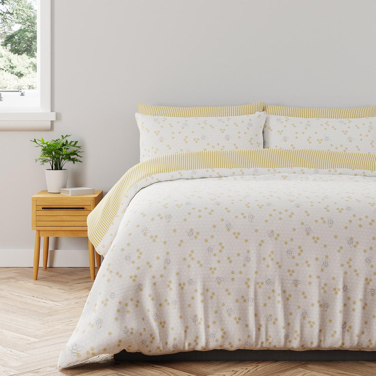 Beatrice Bee 100% Cotton Reversible Duvet Cover and Pillowcase Set Yellow