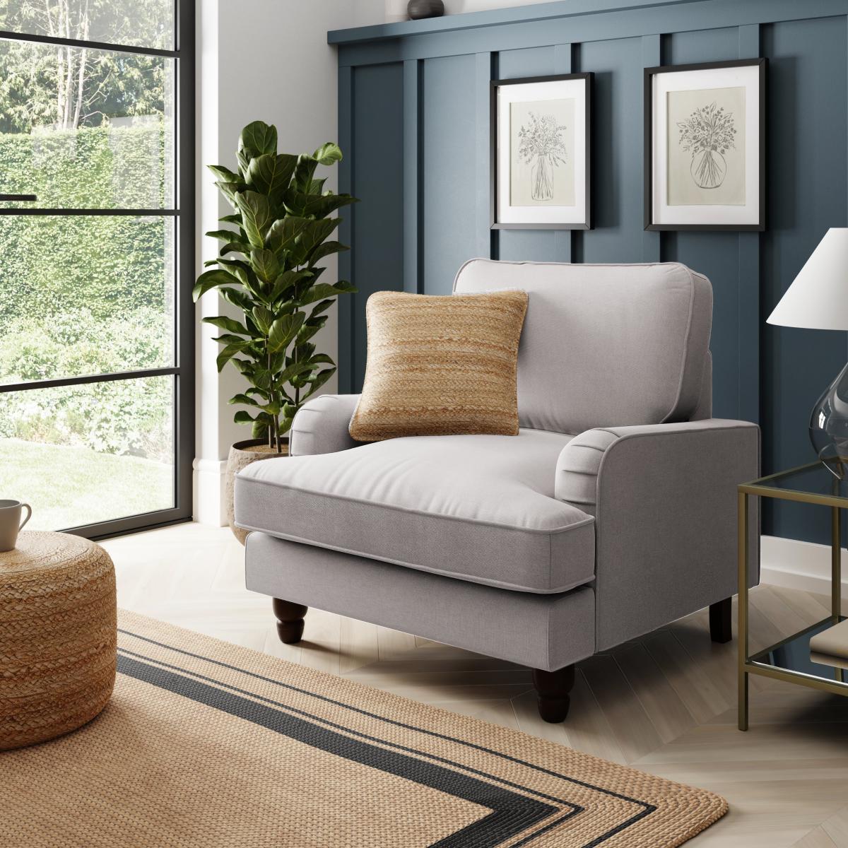 I love the Beatrice flatweave armchair for its versatile design that lends itself well to both contemporary and traditional interiors. Its neutral grey tone makes it easy to pair with a range of colour schemes, from soft pastels to bold hues. This armchair works particularly well in cosy corners or as a statement piece in living rooms, offering both style and comfort. Practical styling tips include layering with textured cushions or throws to add visual interest and warmth. It can also be complemented with soft rugs, plants, or minimal accessories, making it a flexible choice for various interior styles, from Scandi to eclectic.