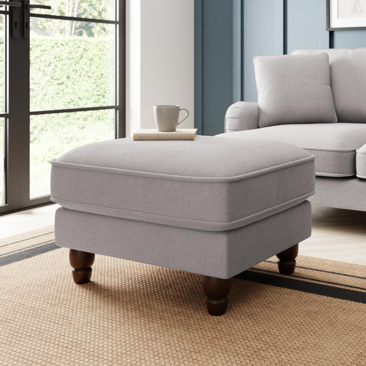 I love this footstool for its versatile style and neutral grey tone, making it an easy addition to a variety of interiors. It works particularly well in contemporary and Scandinavian-inspired spaces, offering a practical yet stylish solution for extra seating or a handy surface. Its flatweave fabric adds a subtle texture that keeps it looking modern without overpowering delicate colour schemes. Practical styling tips include pairing it with a cosy armchair or sofa for a relaxed, lived-in look, or using it as a bedside table alternative in a bedroom. Its sturdy wooden legs also make it durable for everyday use, and it can effortlessly blend into both casual and slightly more formal settings.