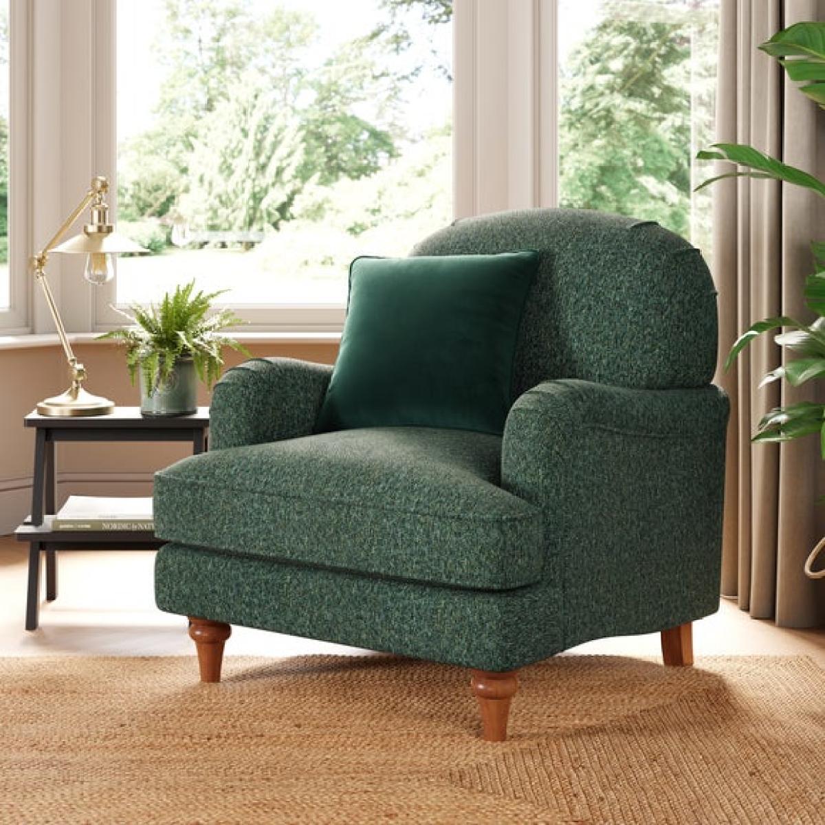 * Re-imagined Beatrice Range * Curved arms * Wooden legs * Foam and Fibre filled seat * Tested up to 110kg This beautiful armchair brings a fresh take on a classic favourite, now with an upgraded shape that feels even more inviting. The blended chenille fabric offers a soft, tactile finish with a subtle sheen that catches the light just so. Its gently sculpted arms and refined silhouette make it a stylish fit for both traditional and modern interiors. Rediscover timeless elegance with the Beatrice II range, our beloved bestseller, now refreshed for the modern era. Experience the same signature comfort you adore, now enhanced with sculpted curves and elevated detailing for a more refined, contemporary feel.
