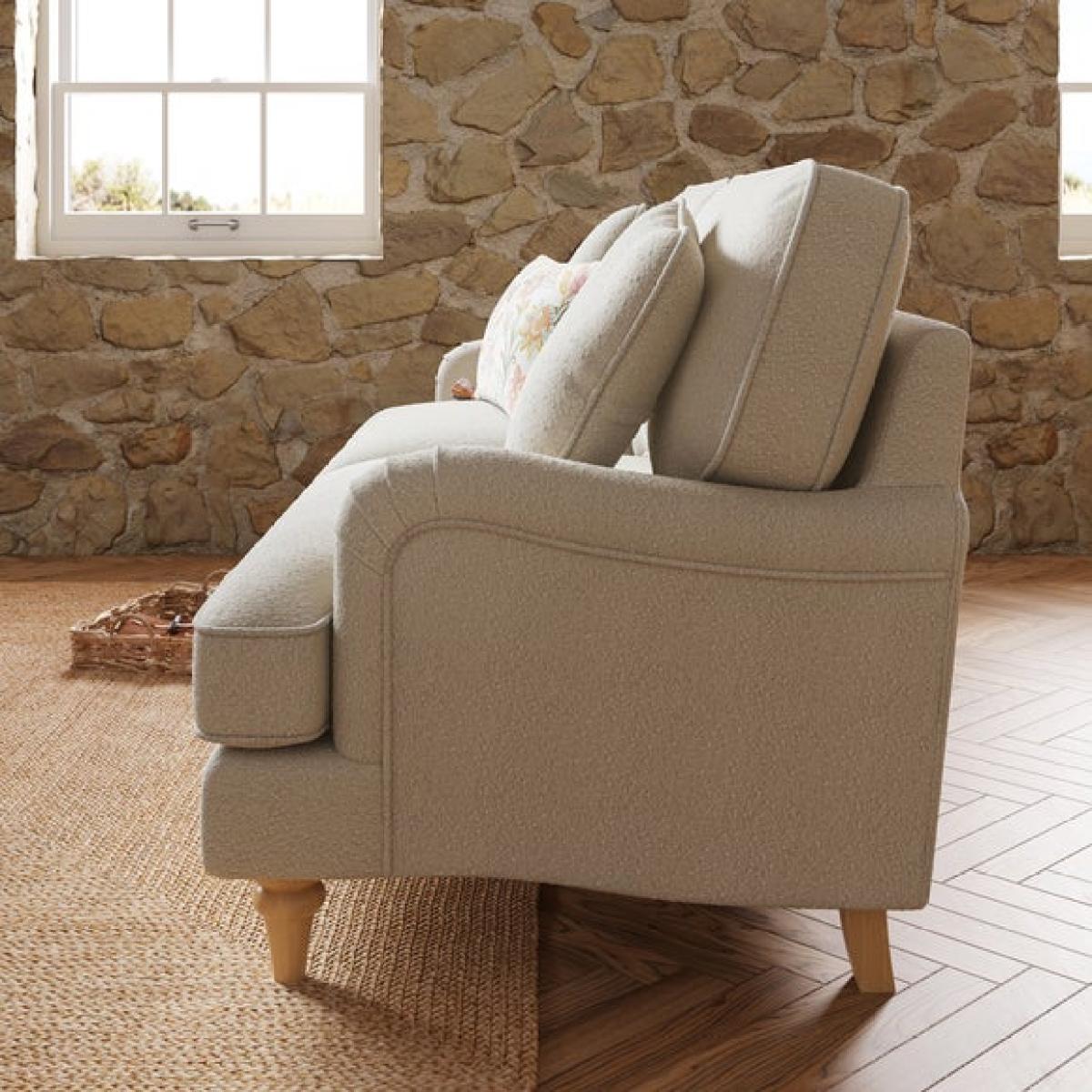 * Re-imagined Beatrice Range * Curved arms * Wooden legs * Foam and Fibre filled seat * Tested up to 320kg This generously sized sofa has been re-imagined with a smoother, more sculpted silhouette that feels both contemporary and cosy. The boucle fabric adds a rich, tactile texture that invites you to sink in and relax. With its updated shape and deep, supportive seat, it’s perfect for stretching out or gathering with loved ones. Rediscover timeless elegance with the Beatrice II range, our beloved bestseller, now refreshed for the modern era. Experience the same signature comfort you adore, now enhanced with sculpted curves and elevated detailing for a more refined, contemporary feel.