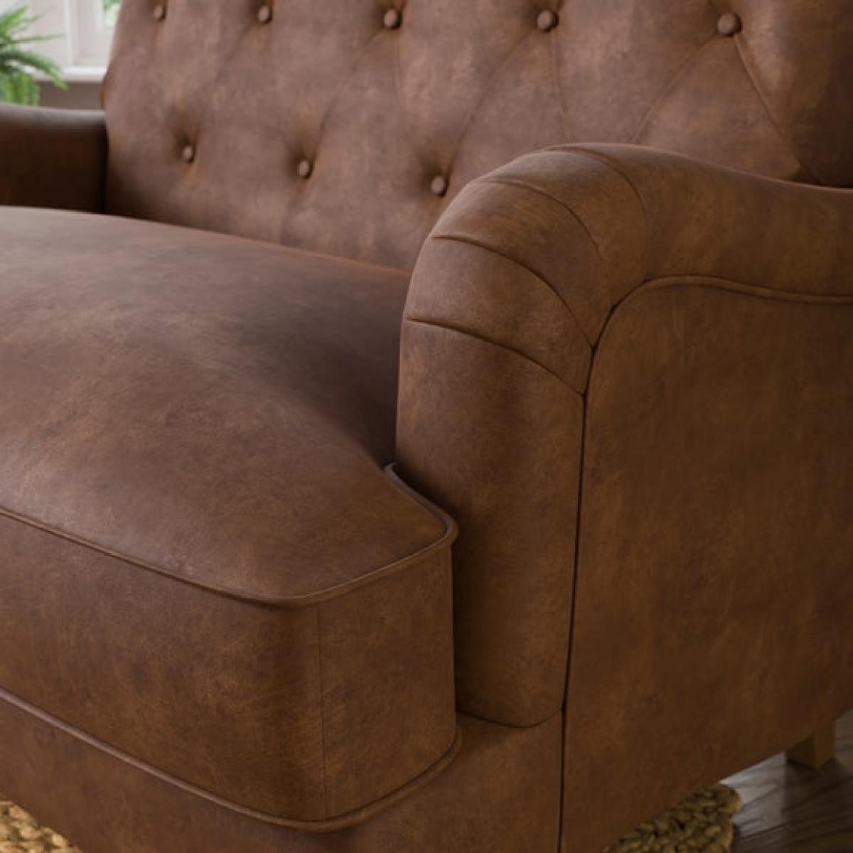 * Re-imagined Beatrice Range * Faux leather upholstery * Button detailing * Curved arms * Wooden legs * Foam and fibre support This beloved design has been updated with a cocooning profile that blends comfort with contemporary style. The buttoned detailing lends a timeless edge, while the faux leather finish offers a luxurious yet relaxed feel. Its refined silhouette features softly rounded arms and a deeper, more supportive seat, making it perfect for unwinding solo or sharing a cosy moment. Rediscover timeless elegance with the Beatrice II range, our beloved bestseller, now refreshed for the modern era. Experience the same signature comfort you adore, now enhanced with sculpted curves and elevated detailing for a more refined, contemporary feel.