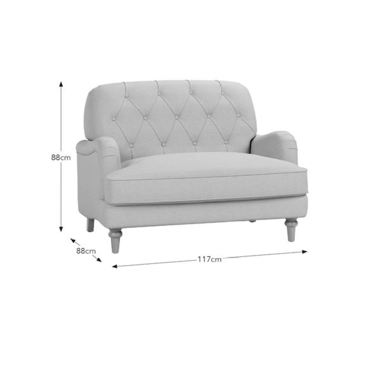 * Re-imagined Beatrice Range * Soft Luna fabric * Button detailing * Wooden legs * Curved arms * Foam and fibre support This much-loved design has been refreshed with a beautifully sculpted, cocooning profile that combines both comfort and style. The buttoned detail adds a classic touch, whilst the soft Luna fabric boasts a tactile finish that feels inviting while standing up to everyday use. The refined silhouette showcases gently rounded arms and a deeper, more supportive seat, making it ideal for relaxing alone or enjoying a cosy moment together. Rediscover timeless elegance with the Beatrice II range, our beloved bestseller, now refreshed for the modern era. Experience the same signature comfort you adore, now enhanced with sculpted curves and elevated detailing for a more refined, contemporary feel.