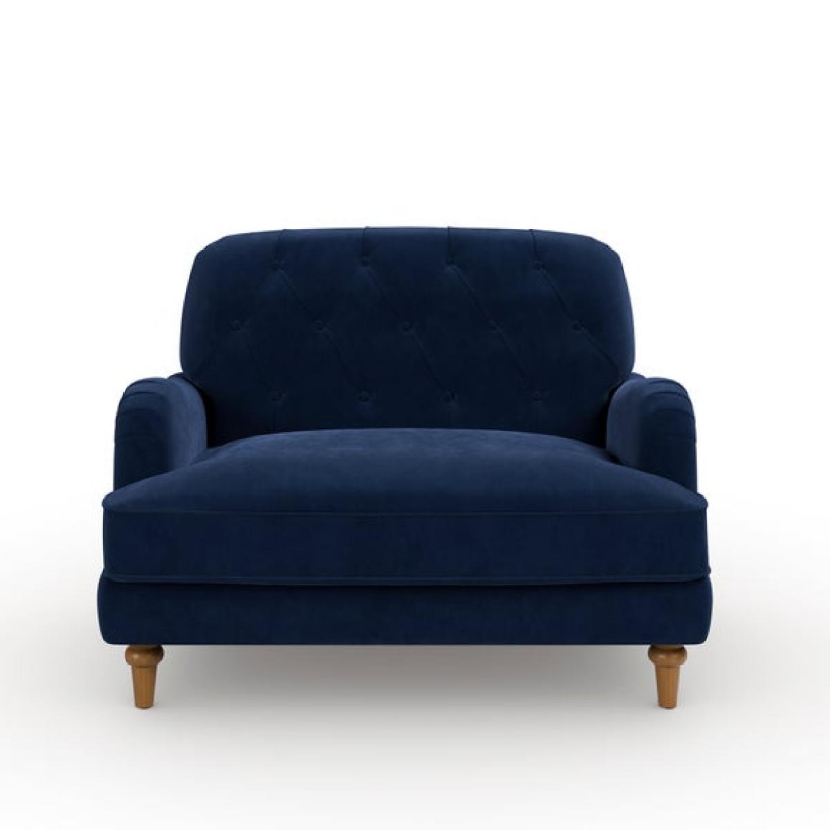* Re-imagined Beatrice Range * Matte velvet upholstery * Button detailing * Curved arms * Wooden legs * Foam and fibre support The much-loved Beatrice snuggle chair has been given a refreshed silhouette with a sculpted, cocooning profile that exudes comfort and elegance. The buttoned detailing adds a timeless accent, while the matte velvet finish brings a soft, luxurious texture that feels indulgent yet durable for everyday living. Its refined silhouette features gently rounded arms and a deeper, more supportive seat, making it the perfect spot to relax solo or share a cosy moment. Rediscover timeless elegance with the Beatrice II range, our beloved bestseller, now refreshed for the modern era. Experience the same signature comfort you adore, now enhanced with sculpted curves and elevated detailing for a more refined, contemporary feel.