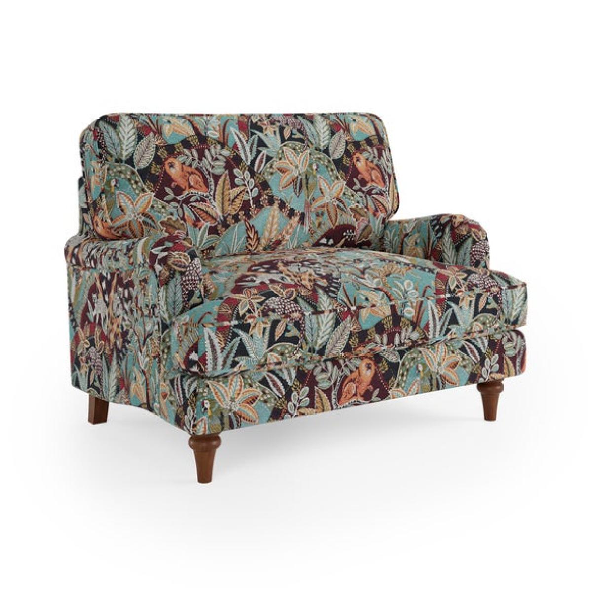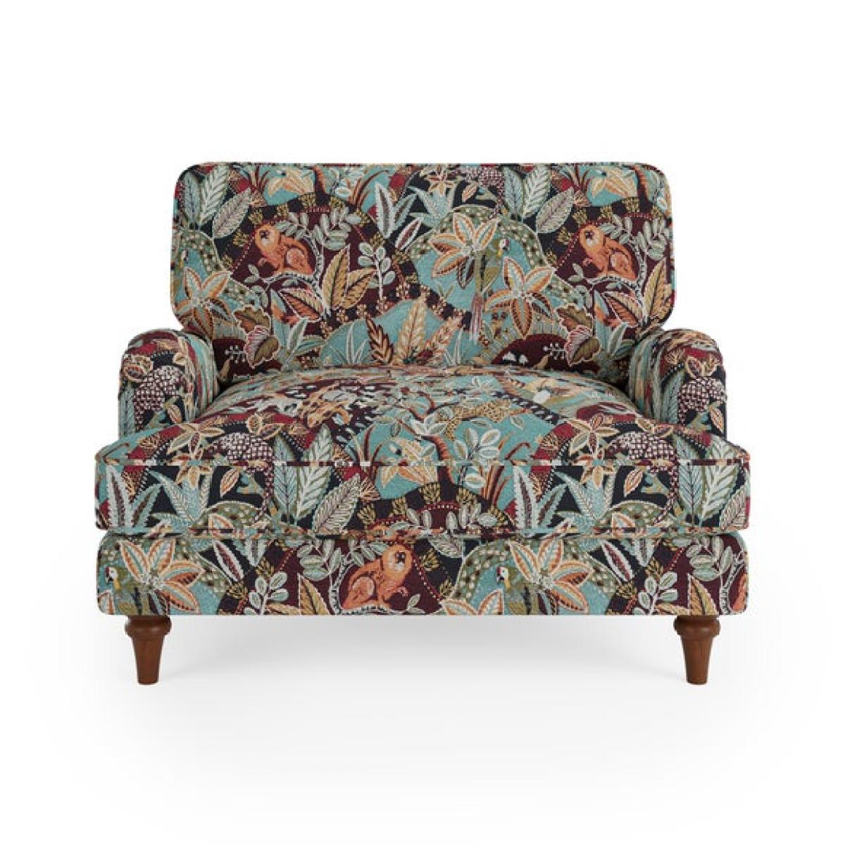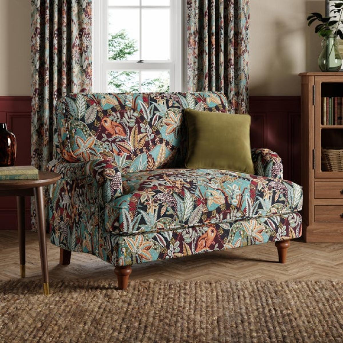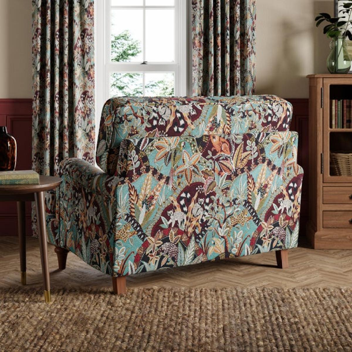 **In collaboration with the Natural History Museum**New and improved. Curved arms Wooden legs. Foam and Fibre filled seat. Bold, expressive, and beautifully reimagined, this snuggle chair has been updated with a more sculpted, cocooning shape that enhances both its comfort and statement appeal. Upholstered in a striking jacquard fabric inspired by the wild beauty of nature, it brings a sense of drama and artistry to any space. The deeper seat and gently curved arms offer a supportive, enveloping feel, making it the perfect place to unwind in style.**Natural History Museum x Dunelm**From spots and stripes to speckled patterns and maze-like designs, extraordinary markings can be found in abundance throughout the natural world. Animals adorn themselves with unique patterning for a variety of reasons – to blend into their environment to avoid predation, to send a warning signal, to attract mates and even to regulate their temperature. This collection celebrates just a select few of the many beautiful patterns that can be found in nature from the striking markings of the jaguar to the brilliantly vivid colours of a poison dart frog. With many of the species featured within this collection at risk or endangered, we want to shine a light on these incredible animals and raise awareness of threats to the security of their future. © The Trustees of the Natural History Museum, London 2025. All Rights Reserved.