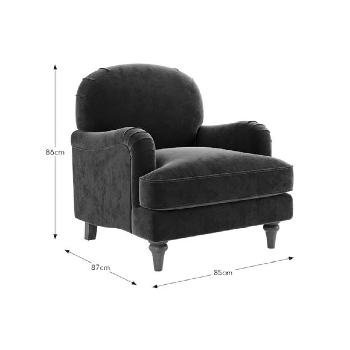 * Re-imagined Beatrice Range * Curved arms * Wooden legs * Foam and Fibre filled seat * Tested up to 110kg This beautiful armchair brings a fresh take on a classic favourite, now with an updated shape that feels even more inviting. The soft velvet fabric offers a soft, tactile finish. Its gently sculpted arms and refined silhouette make it a stylish fit for both traditional and modern interiors. Rediscover timeless elegance with the Beatrice II range, our beloved bestseller, now refreshed for the modern era. Experience the same signature comfort you adore, now enhanced with sculpted curves and elevated detailing for a more refined, contemporary feel.