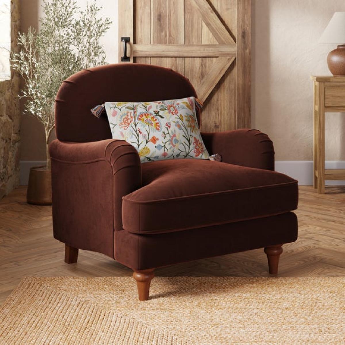 I really like this armchair because of its plush velvet finish, which adds instant luxury to any room. It works particularly well in both traditional and contemporary interiors, especially when paired with wooden accents or soft textiles for a cosy feel. For styling, consider adding a textured throw or a couple of decorative cushions in complementary colours to create an inviting nook. Practical tips include placing it in a corner with good lighting or near a side table for drinks and books, making it both a stylish and functional choice. Its rich colour and elegant shape make it a versatile piece that can elevate a living room or a study effortlessly.