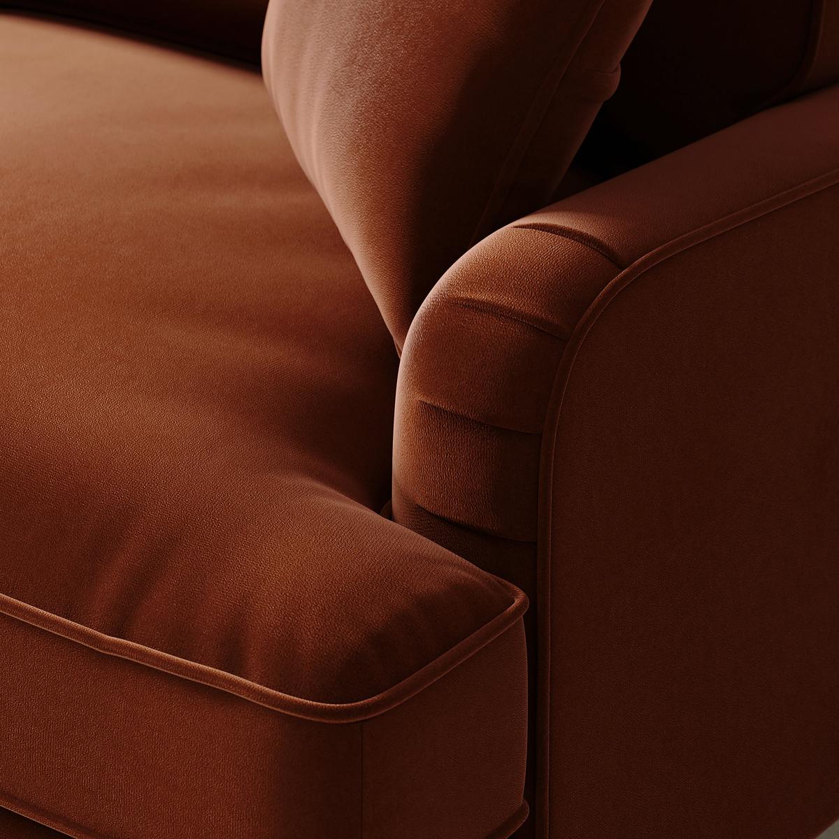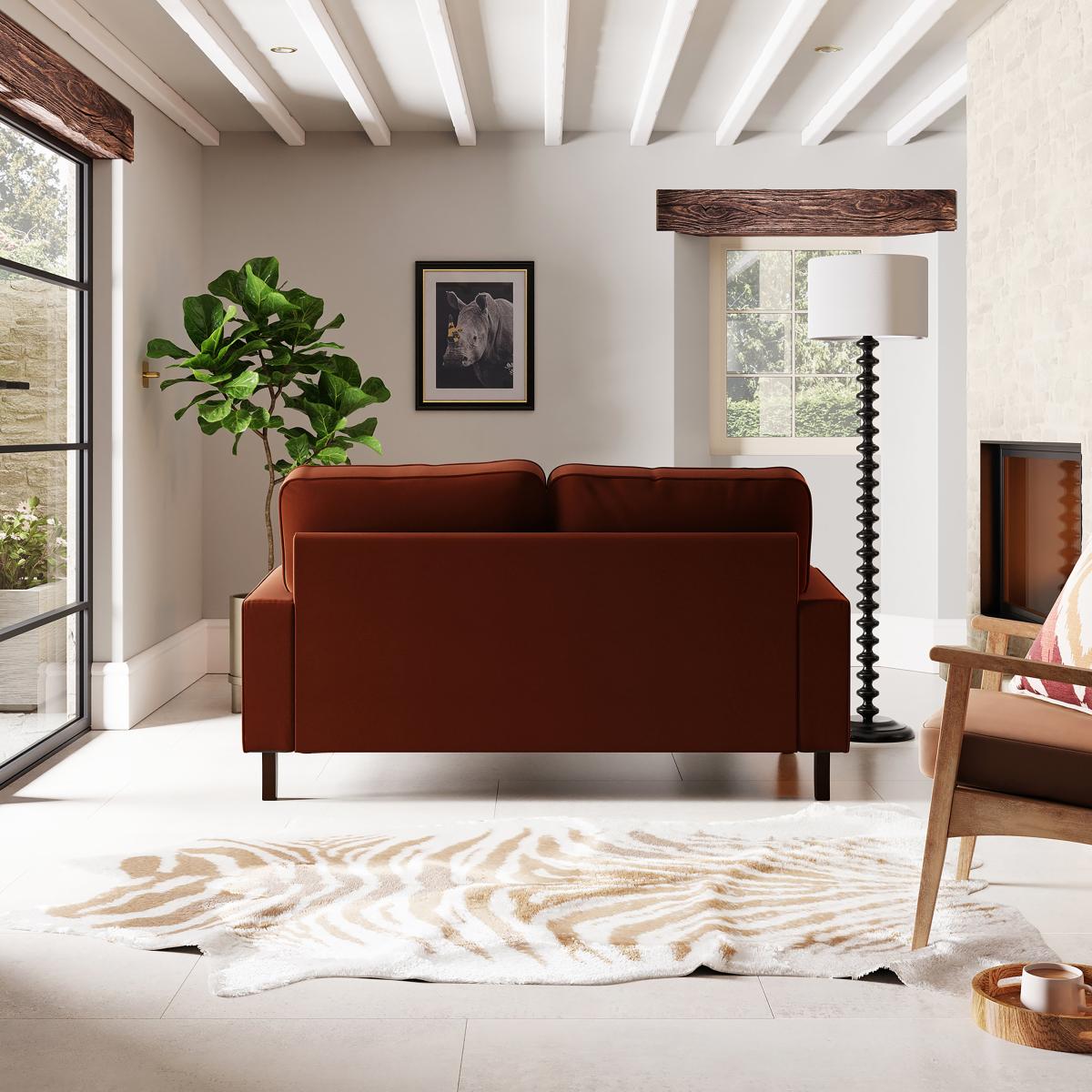 Offering a modern take on a vintage style, the Beatrice two seater sofa would make a magnificent addition to any home. This sofa is upholstered in a 100% recycled velvet fabric that's both luxuriously soft and kind to the environment, made using a total of 114 recycled plastic bottles. Complete with a pleated arm design, piped edge detailing and turned, natural finished rubberwood legs, this sofa offers a stunning design that would bring a touch of sophistication and elegance to any room. As well as being undoubtedly stylish, the Beatrice is comfortable too, offering foam and fibre filled seats and a webbed and sprung base to provide optimal support, as well as plush fibre filled back cushions and two matching scatter cushions. Made with recycled materials. Need to throw out your old sofa first? View our information on furniture recycling and collections.