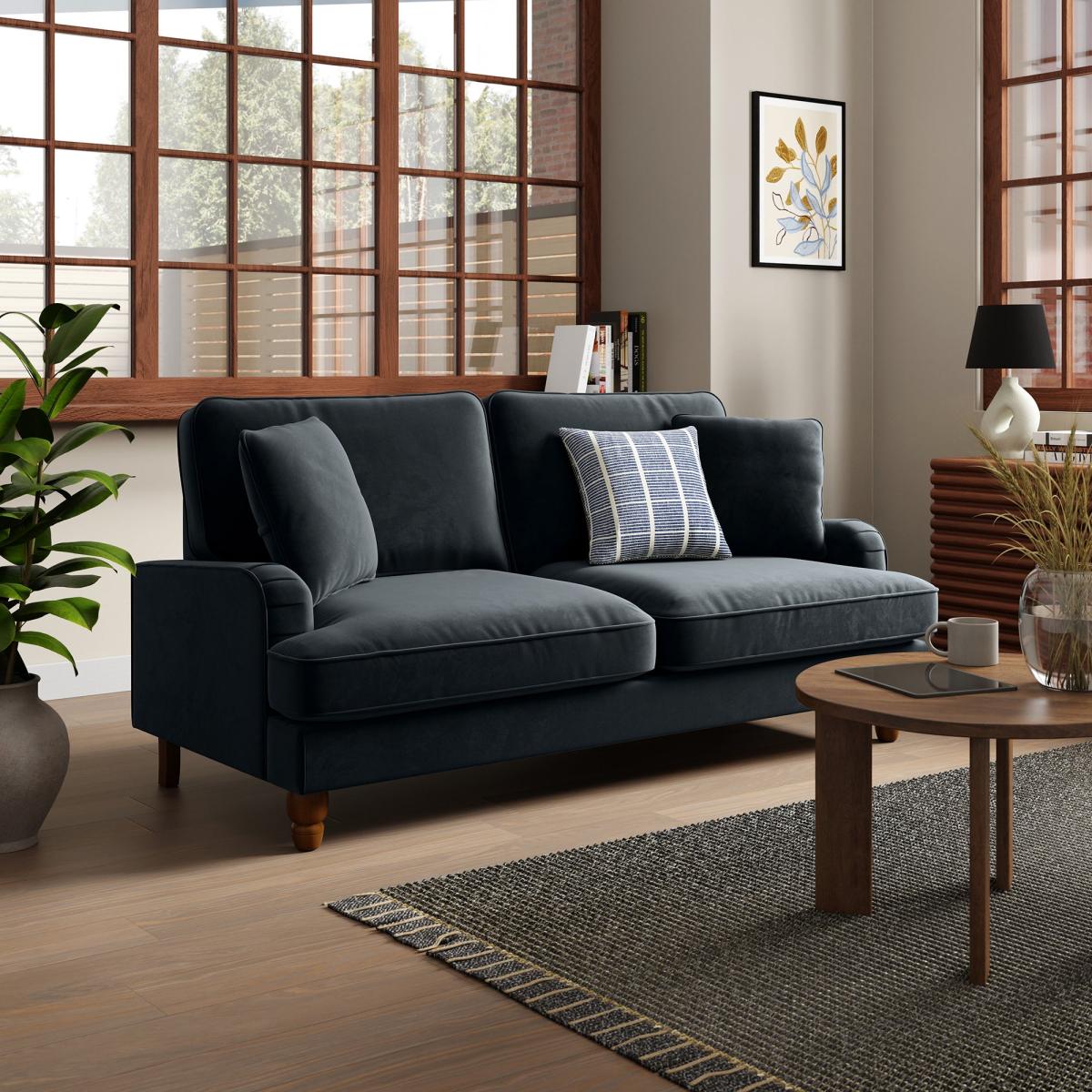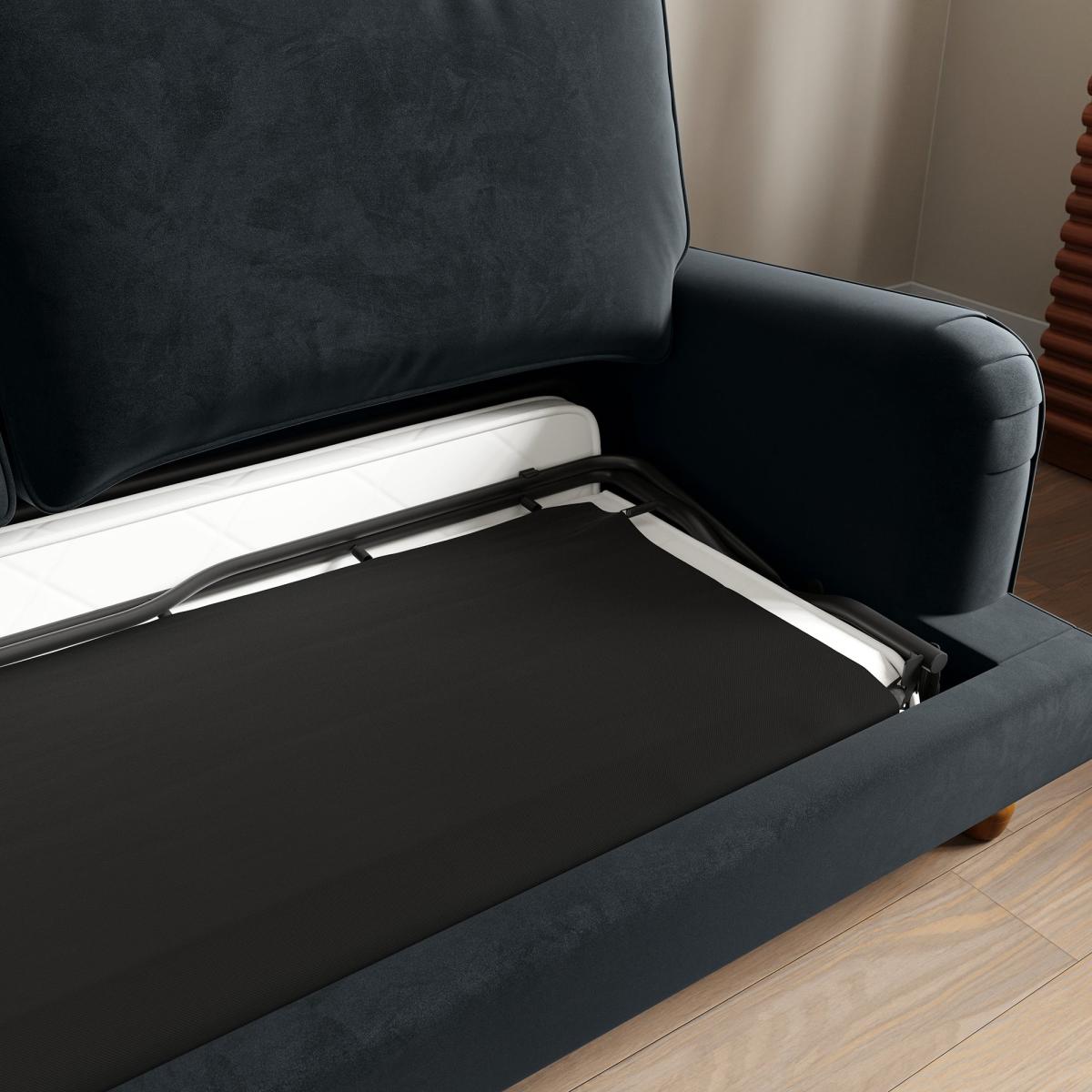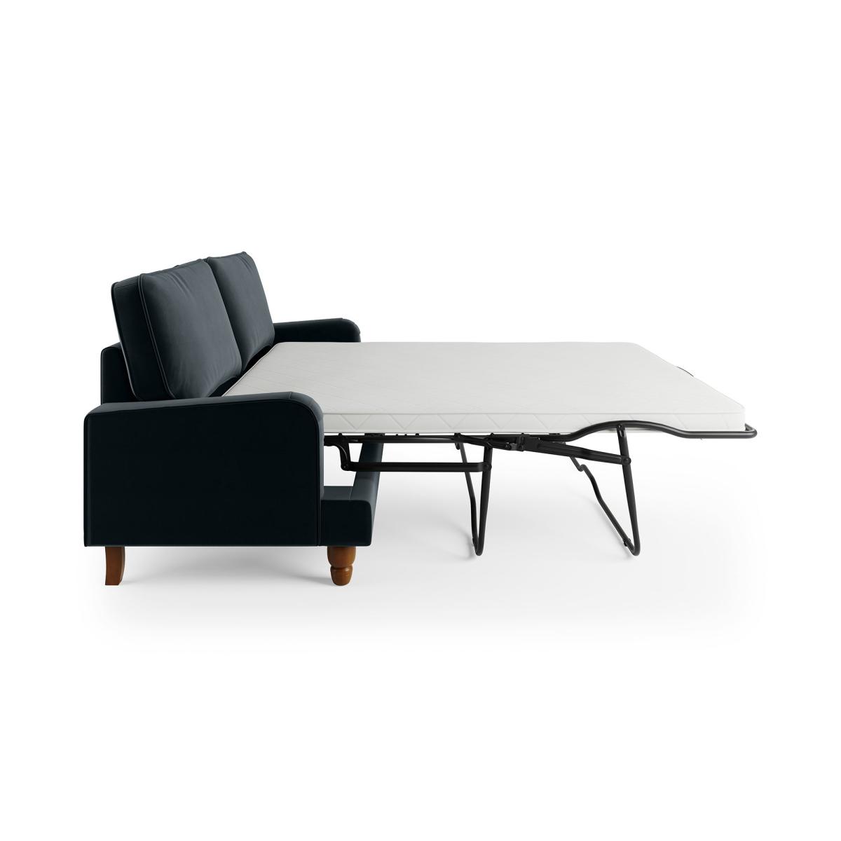 Dunelm Exclusive - Designed and Developed by Dunelm Offering a modern take on a vintage style, the Beatrice sofa bed would make a magnificent addition to any home. This sofa is upholstered in a 100% recycled velvet fabric that's both luxuriously soft and kind to the environment, made using a total of 143 recycled plastic bottles. Complete with a pleated arm design, piped edge detailing and turned, natural finished rubberwood legs, this sofa offers a stunning design that would bring a touch of sophistication and elegance to any room. As well as being undoubtedly stylish, the Beatrice is comfortable too, offering foam and fibre filled seats and a webbed and sprung base to provide optimal support, as well as plush fibre-filled back cushions and two matching scatter cushions. This sofa is also great for when you have guests over, easily converting into a double bed, complete with a 10cm deep coil spring and foam mattress. The bi-fold flip sofa bed mechanism also features a locking TV headrest function to provide added comfort when lounging or watching TV, and an anti-tilt system. Need to throw out your old sofa first? View our information on [furniture recycling and collections](https://www.dunelm.com/info/about/mattress-and-furniture-recycling).