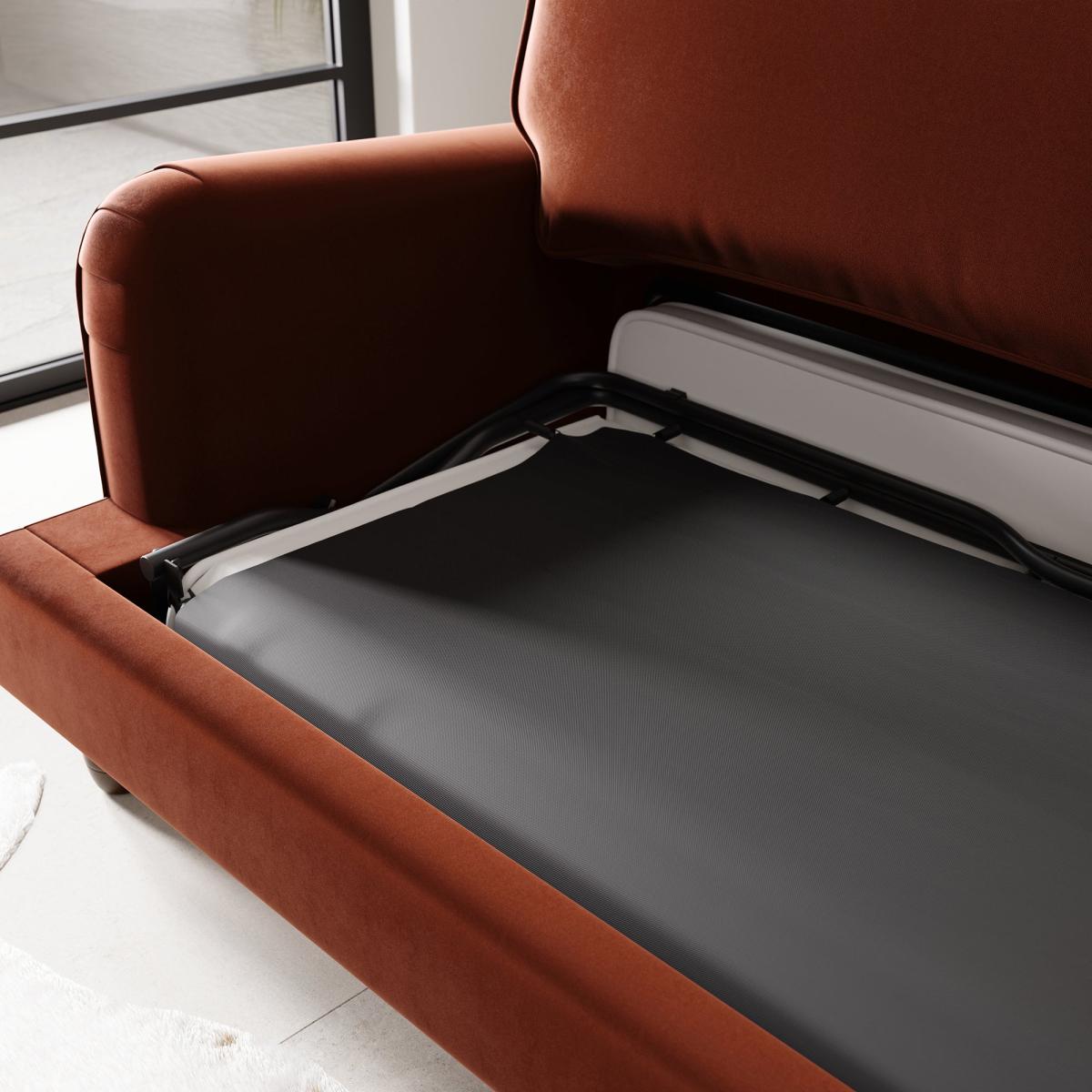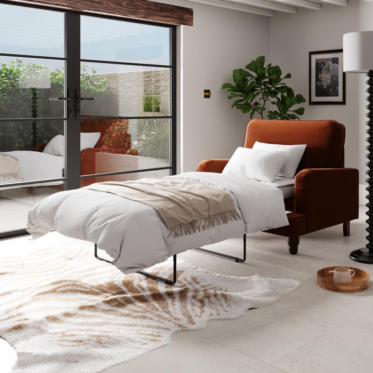 I love this beige velvet snuggle sofa bed for its versatile and contemporary appeal, making it a practical addition to various interiors. It works particularly well in modern or eclectic spaces, where the rich velvet texture adds a touch of luxury without feeling too formal. The peacock colour offers a striking but sophisticated pop of colour that can anchor a room or complement neutrals. Practical styling tips include pairing it with layered throws and cushions in contrasting textures or tones to create a cosy, inviting look. To keep it looking fresh, opt for washable slipcovers or easy-to-maintain textiles and position it where it can be a welcoming spot for relaxation or overnight guests without overpowering the existing decor.