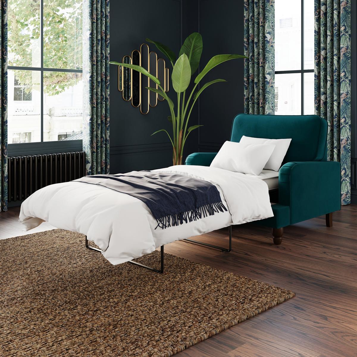 Beatrice Matte Velvet Snuggle Single Sofa Bed Velvet Peacock