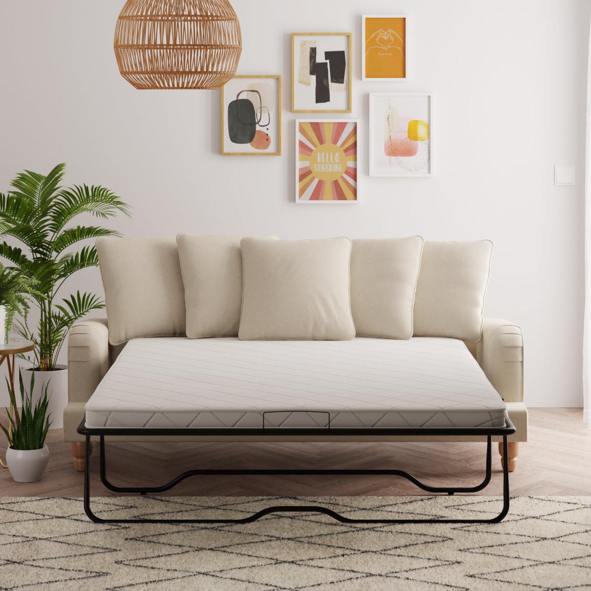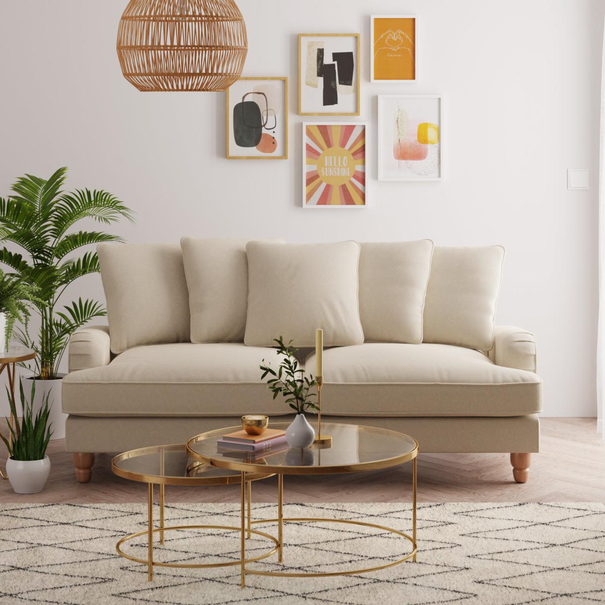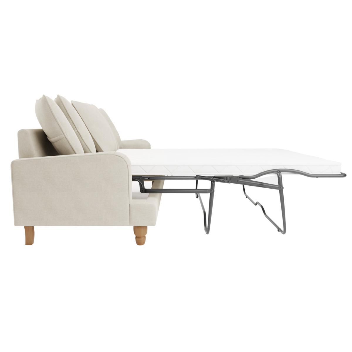 Providing a modern take on a timeless vintage style, the Beatrice Scatterback three seater sofa bed would make a magnificent addition to any home. This sofa bed is upholstered in an undeniably soft polyester fabric, complete with a pleated arm design and piped edge detailing. Finished with turned rubberwood legs in a natural finish, this sofa offers a stunning design that would bring a touch of sophistication and elegance to any room and is available in a choice of gorgeous colours. As well as being undoubtedly stylish, the Beatrice is comfortable too, offering foam and fibre filled seats and a webbed and sprung base to provide optimal support, as well as five plush fibre-filled scatter cushions. This sofa is also great for when you have guests over, easily converting into a bed with space for up to two people. To check out our handy sizing guide to help you find out if you’ll be able to get your new furniture into your home.