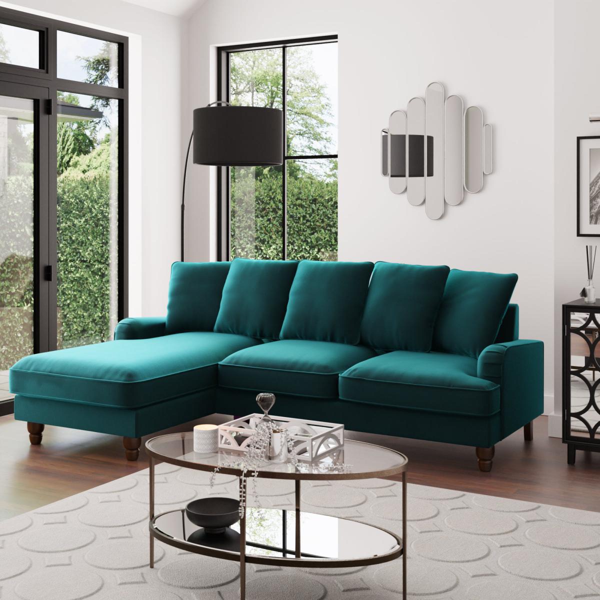 Beatrice Scatter Back Velvet Left Hand Corner Sofa Peacock