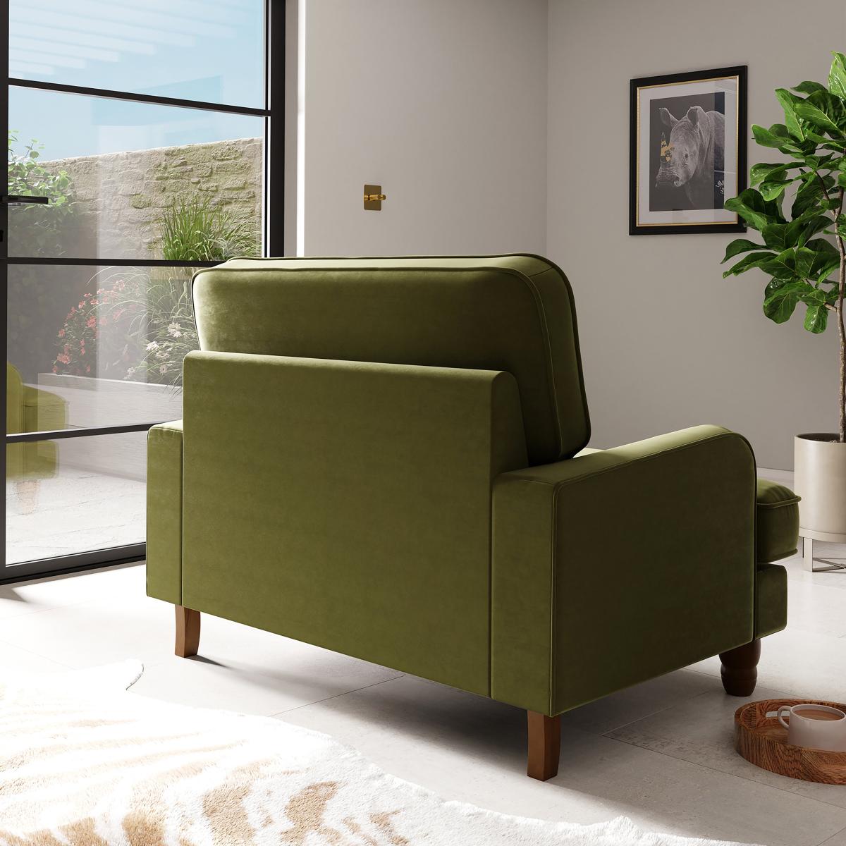 * Snuggle chair for cosy and intimate seating* Fixed back for support* Square arms for a contemporary look* Foam and fibre filled cushions for a comfortable experience Upholstered in rich velvet fabric, this sofa radiates luxury and style, enhancing the ambiance of any room. Sink into its plush cushions and experience unparalleled relaxation as you unwind after a busy day. The snug and inviting design, coupled with its generous seating area, makes it perfect for intimate gatherings or solo lounging sessions.