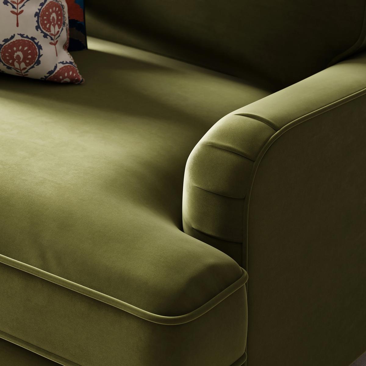 The Beatrice Snuggle Sofa in velvet olive is a fantastic choice for adding a pop of colour and texture to a variety of interiors. I love its classic shape combined with the luxurious velvet fabric, making it both inviting and stylish. It works particularly well in contemporary spaces with neutral palettes, where it can serve as a statement piece, but it also complements bohemian or eclectic schemes thanks to its rich hue. For styling tips, pair it with patterned cushions or textured throws to enhance its cosy vibe. Adding a statement rug and some greenery can further elevate the look, making it a versatile yet impactful addition to your lounge or snug.