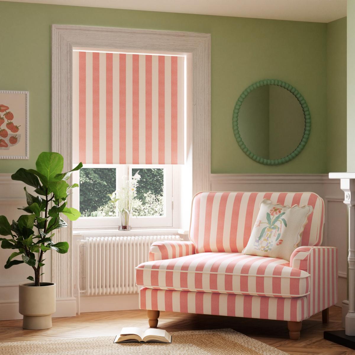 * Simple stripe design* Made from recycled polyester* Blackout finish Looking to update your window? Look no further than the Beatrice Stripe coloured roller blind. The wide, woven stripe pattern adds a touch of texture and charm to your room and the blackout finish reduces external light and adds privacy. This modern roller blind is made from recycled polyester and supplied with all fixings included. Available in a variety of sizes and colours. Crafted in a range of colours, this blackout roller blind is available in a selection of sizes and can easily be cut down to suit your requirements. The quality blackout coating helps to prevent unwanted external light from entering your home and improves privacy. Supplied with all fixings included. Child safety: Install and use cord safety devices according to manufacturer’s instructions. Read our Blind Safety Guide for more information. These blinds can be cut down to suit your requirements. Please note that blinds cannot be returned once altered. Please note: The width stated is for the fabric only, please allow an extra 3.2cm for the brackets and mechanism. Always check specific fitting instructions and check measurements for your blind once purchased before cutting to size.