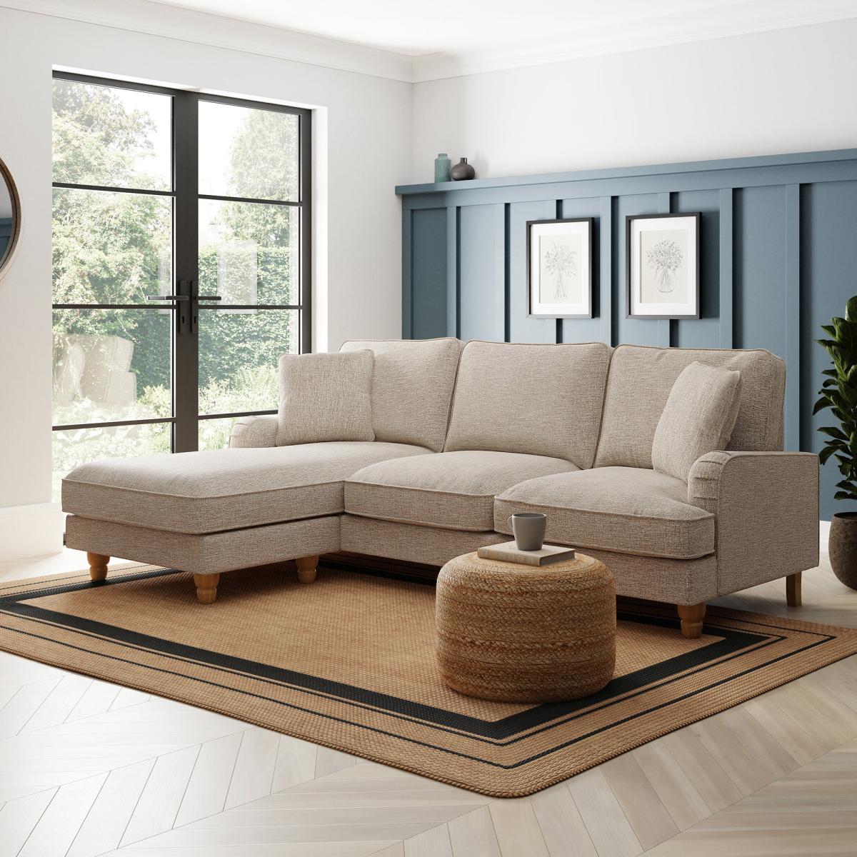 Beatrice Tonal Textured Weave Corner Chaise Sofa Tonal Textured Weave Linen