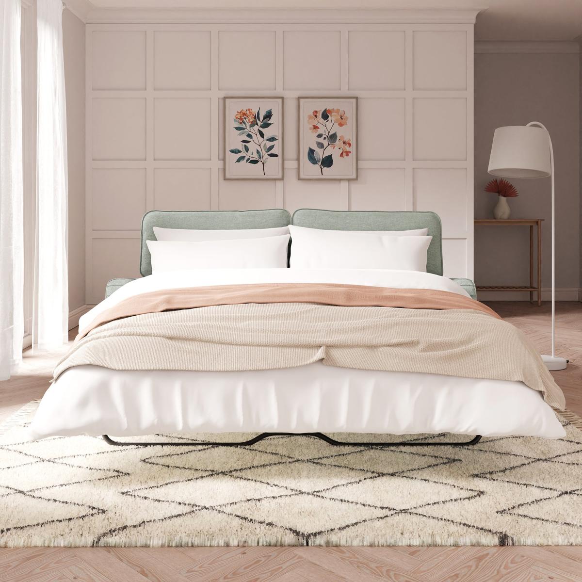 I love this Beatrice sofa bed for its chunky chenille texture, which adds a cosy, inviting feel to any space. It works particularly well in relaxed homes or interiors that balance modern with tactile comfort, such as Scandinavian or boho styles. Practical styling tips include pairing it with soft, neutral tones and layered textiles to enhance its natural aesthetic. It’s versatile enough to be the centrepiece in a guest room or a multi-functional living space, and I’d suggest keeping accessories minimal to let the textured weave stand out while ensuring the overall look remains fresh and uncluttered.