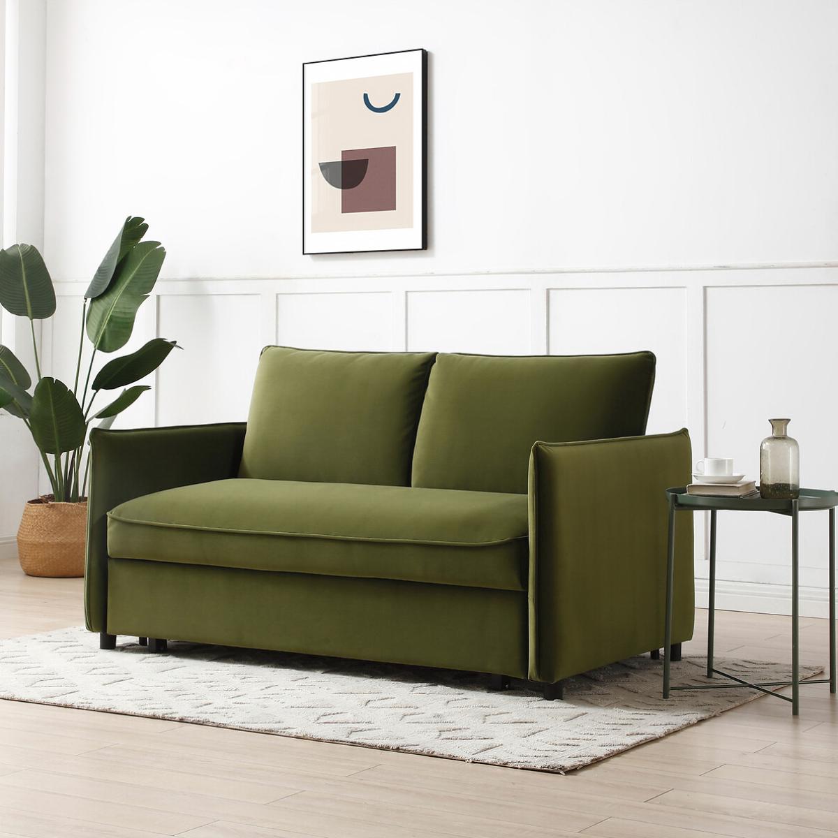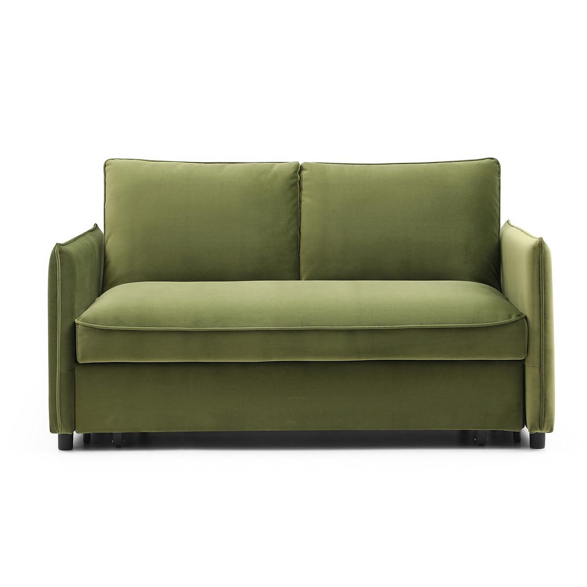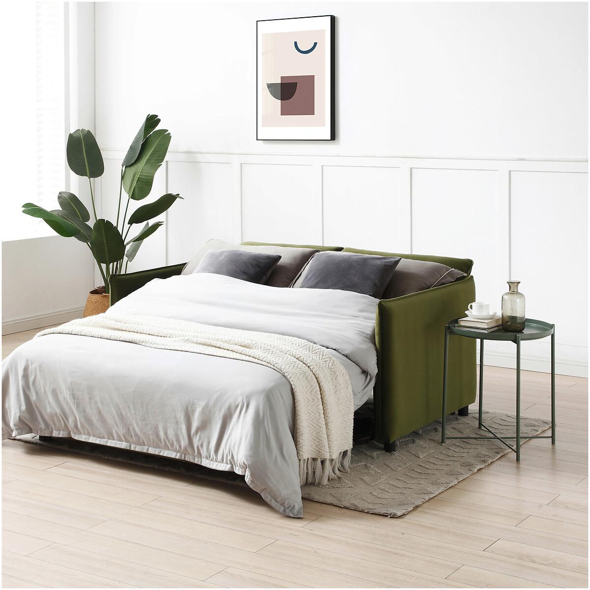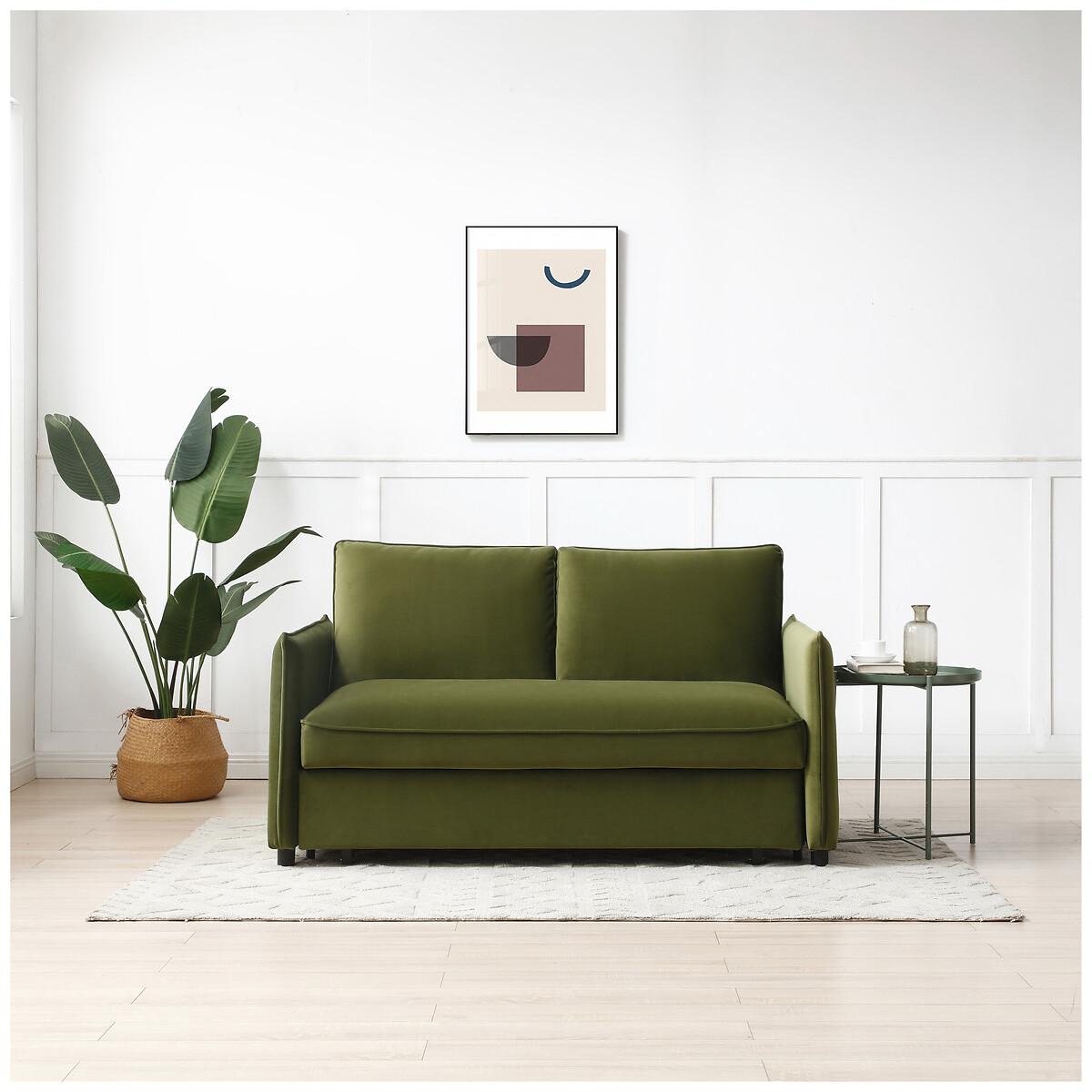 Many sofa beds are very firm, but this is not the case with the Beatrice. Deep foam fillings and a generously padded seat make the Beatrice much more comfortable than the traditional sofa bed - perfect for lounging at leisure without compromising on practicality. A clever pull-out mechanism reveals a comfy sofa bed perfect to accomodate extra overnight guests. Upholstered in soft matte velvet fabric, with piped stitched envelope finishings, the Beatrice is sure to fit seamlessly into any living room. Product details• Velvet Upholstery - An beautifully flat velvet in a gorgeous muted shade perfect for those wanting a understated luxe look. A flat finish pile makes it difficult for the material to snag – ideal if you live with pets and sure to prove durable for years to come.• Created with medium density foam fillings for a sofa with a level of comfort suitable for most.• Foam filled seats provide great support without compromising on comfort, and require little maintenance to keep their shape, ensuring your sofa looks as good as it does the day you welcomed it into your living room.• A "pop up" sofa bed design, the sleeping area is easily revealed by grasing a strap and carefully pulling out a hidden drawer which ensures the remaining section "pops up" and creates a generously proportioned bed. • Seats 2• Self Assembly required (2 person)• EUTR Compliant, BS5852 compliant• 1 Year Warranty. Product Composition• Fabric - Velvet (100% Polyester)• Seat Filling - Foam• Back Filling - Polyester Fibre• Legs - plastic (with castors)• Frame - metal Product Dimensions -Overall depth - 90 cm. Overall width - 156 cm. Overall height 90 cm Weight - 72 KGSeat Height - 47 cm. Seat Width-138 cm. Seat Depth - 57 cm. Back Height - 48 cm. Arm height - 61 cm Sofa Bed Sleeping Area Dimensions - 114.5 x 188.5 cm Package Dimensions - 142 cm x 117 cm x 50 cm, Weight 82 kg. Please remember to measure your available space before ordering. This product will be dispatched by one of our trusted suppliers. You’ll be contacted by their selected courier about your delivery. Please note: this product cannot be delivered to all Offshore Islands, Northern Ireland or Republic of Ireland. KYOTO01