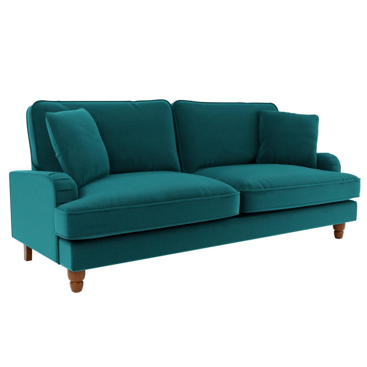 Offering a modern take on a vintage style, the Beatrice four seater sofa would make a magnificent addition to any home. This sofa is upholstered in a 100% recycled velvet fabric that's both luxuriously soft and kind to the environment, made using a total of 158 recycled plastic bottles. Complete with a pleated arm design, piped edge detailing and turned, natural finished rubberwood legs, this sofa offers a stunning design that would bring a touch of sophistication and elegance to any room. As well as being undoubtedly stylish, the Beatrice is comfortable too, offering foam and fibre filled seats and a webbed and sprung base to provide optimal support, as well as plush fibre filled back cushions and two matching scatter cushions. To check out our handy sizing guide to help you find out if you’ll be able to get your new furniture into your home.