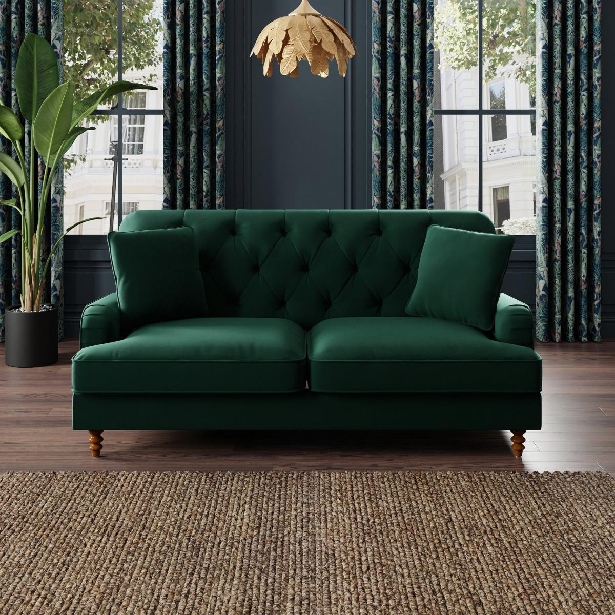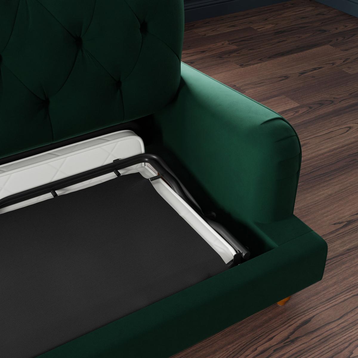 Beatrice Velvet Buttoned 3 Seater Double Sofa Bed Matte Velvet Bottle Green