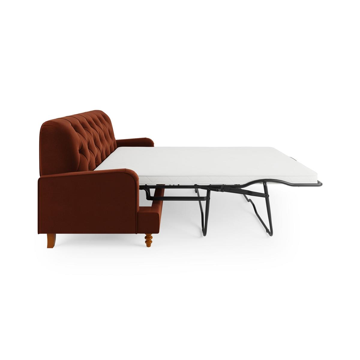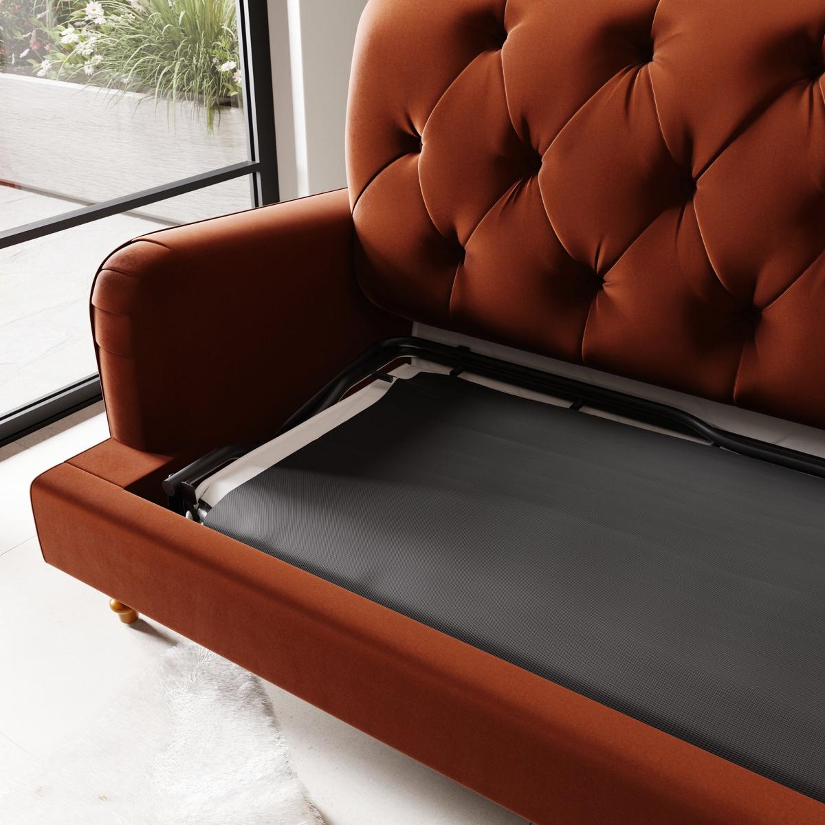 Beatrice Velvet Buttoned 3 Seater Double Sofa Bed Velvet Orange Umber