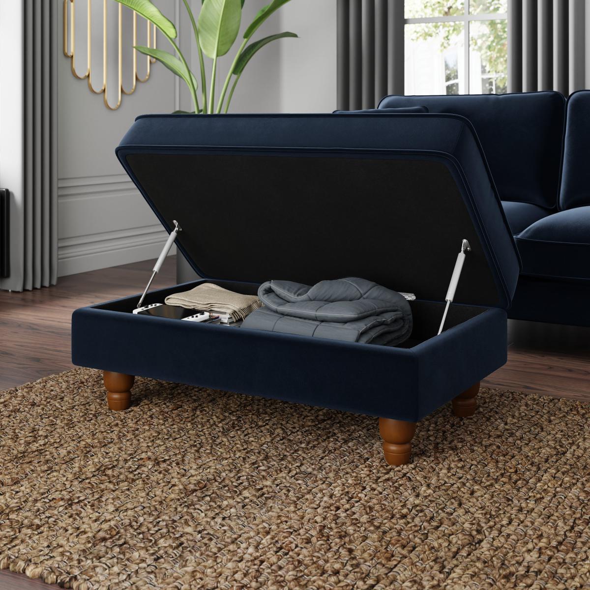 Beatrice Velvet Large Storage Footstool Navy Velvet