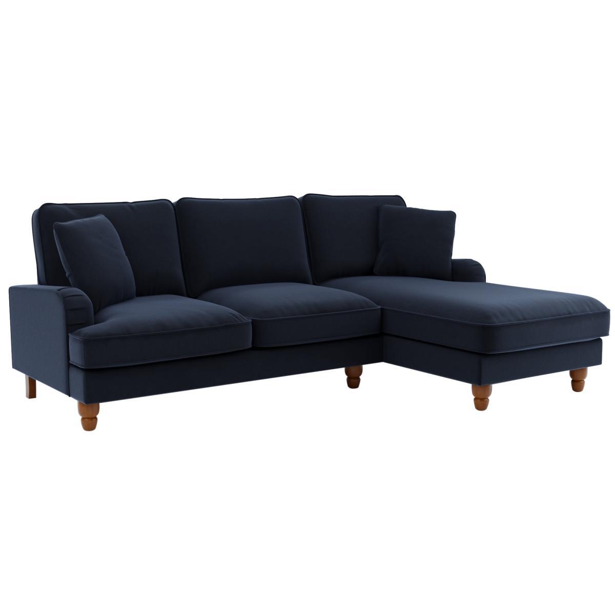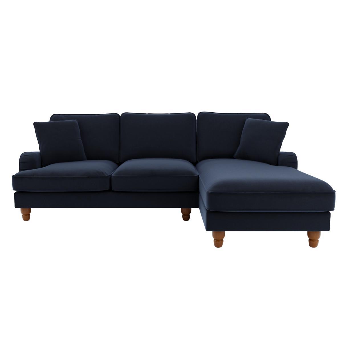 Offering a modern take on a vintage style, the Beatrice corner sofa would make a magnificent addition to any home. This sofa is upholstered in a 100% recycled velvet fabric that's both luxuriously soft and kind to the environment, made using a recycled plastic bottles. Complete with a pleated arm design, piped edge detailing and turned, natural finished rubberwood legs, this sofa offers a stunning design that would bring a touch of sophistication and elegance to any room. As well as being undoubtedly stylish, the Beatrice is comfortable too, offering foam and fibre filled seats and a webbed and sprung base to provide optimal support, as well as plush fibre filled back cushions and two matching scatter cushions. Made with recycled materials. To check out our handy sizing guide to help you find out if you’ll be able to get your new furniture into your home.