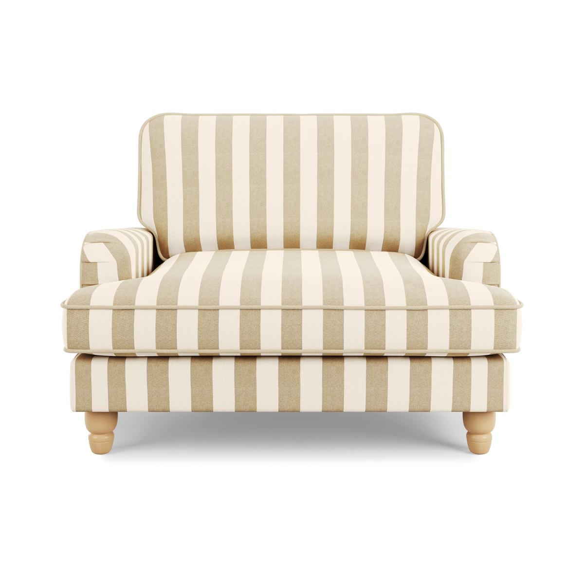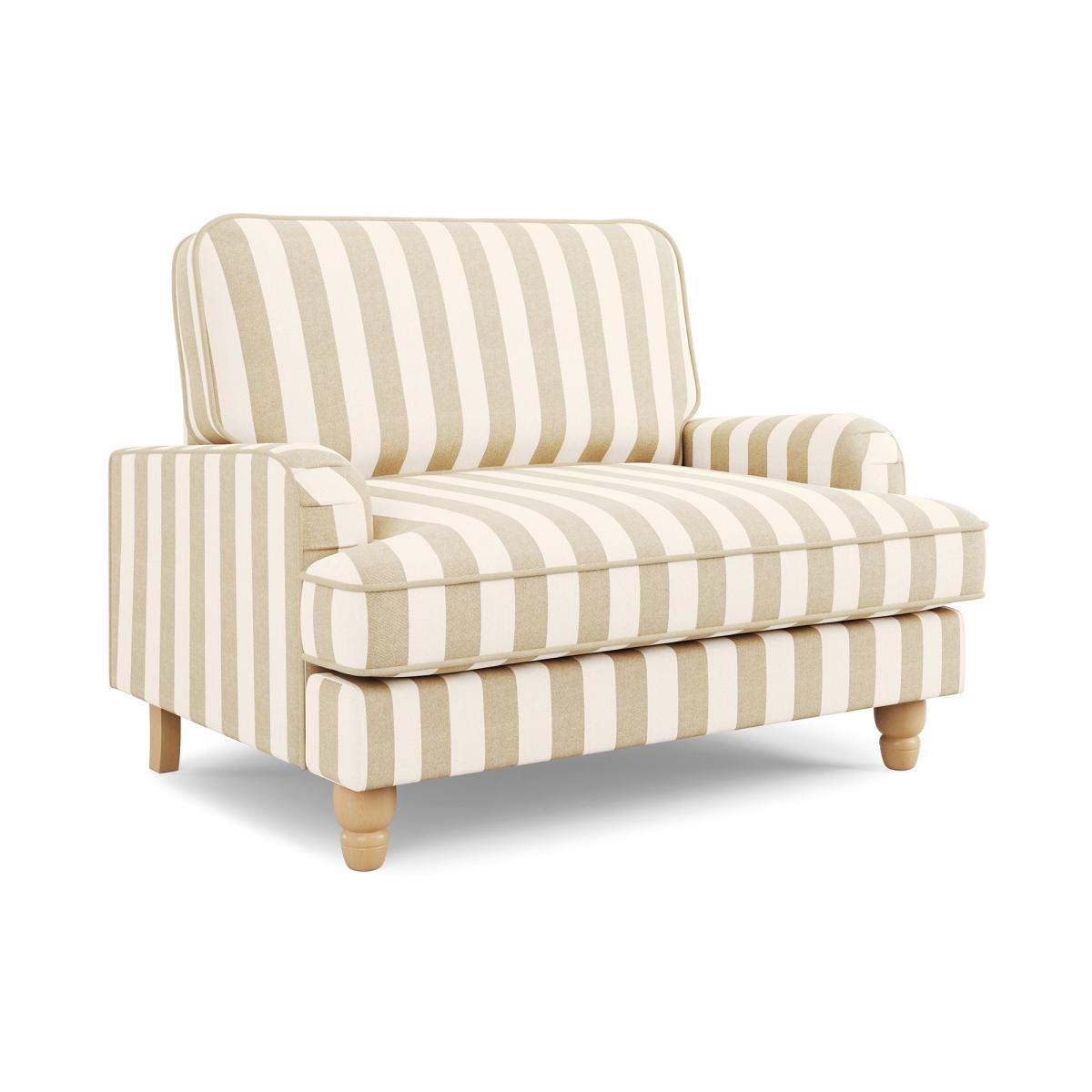 Dunelm Exclusive - Designed and Developed by Dunelm* Snuggle chair for cosy and intimate seating* Fixed back for support* Square arms for a contemporary look* Foam and fibre filled cushions for a comfortable experience Looking for a snuggle chair that adds a pop of personality to your space? Look no further than the Beatrice Woven Stripe Snuggle Chair. With its 1-seat design, fixed back, square arms, and stylish slub cotton blend fabric, it's a statement piece that's as comfortable as it is eye-catching. The woven stripe pattern adds a touch of texture and charm, while the foam and fibre-filled cushioning provide a cosy seat you'll love sinking into.