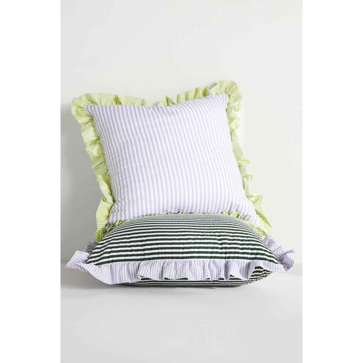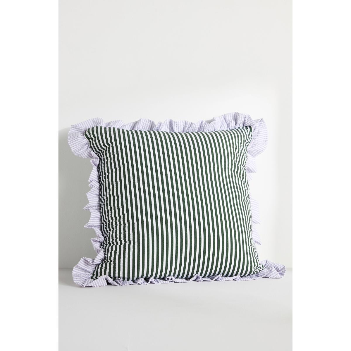 Inspired by French countryside design, the striped and ruffled details of this cushion will have your space looking oh-so-chic. Beatriz Striped Square Cushion by Anthropologie in Green Size: 20 in sq