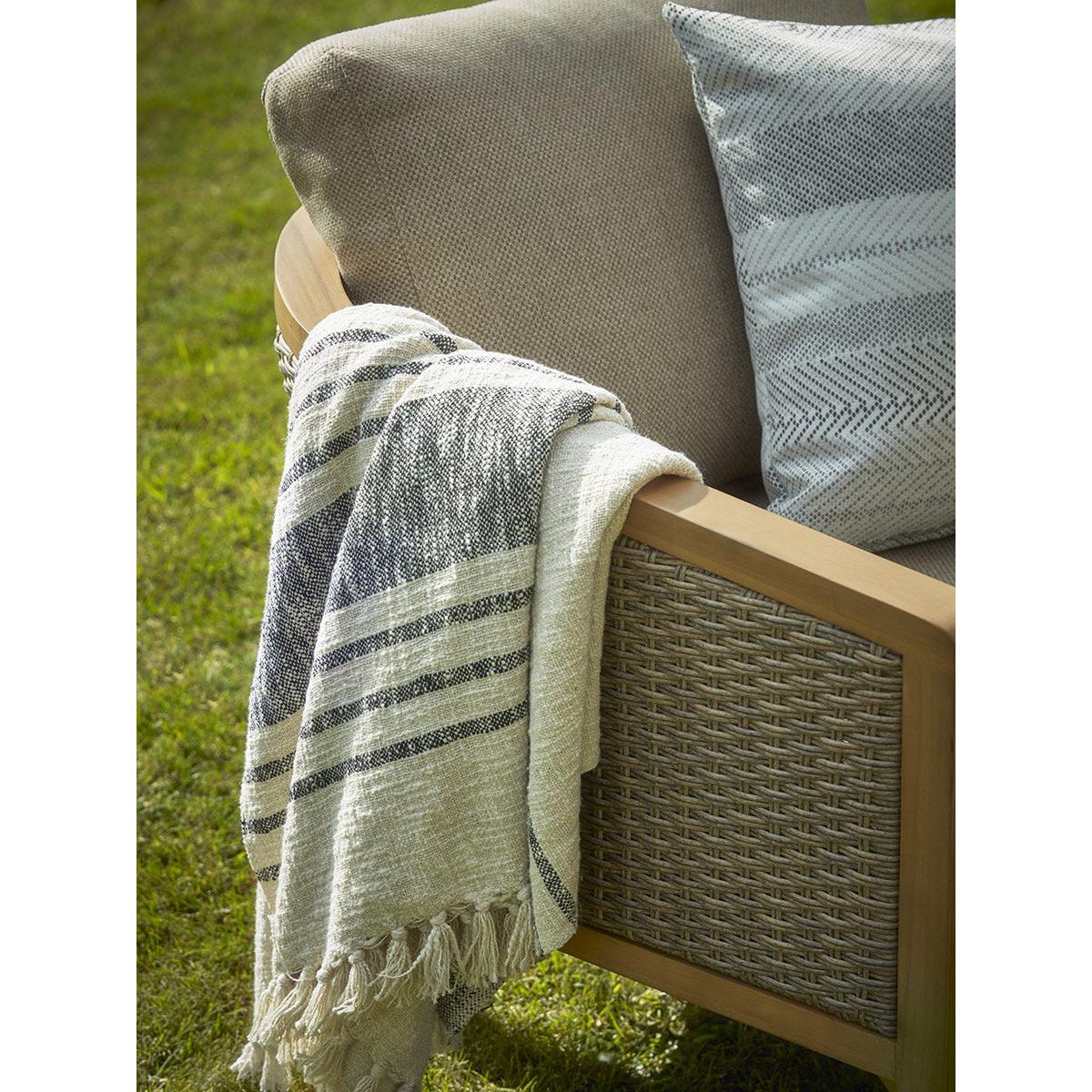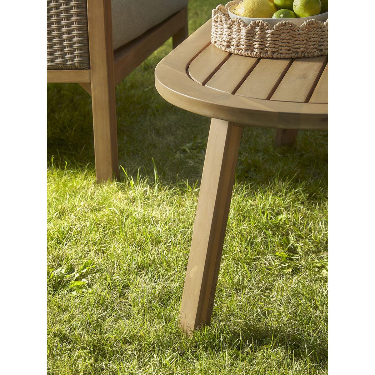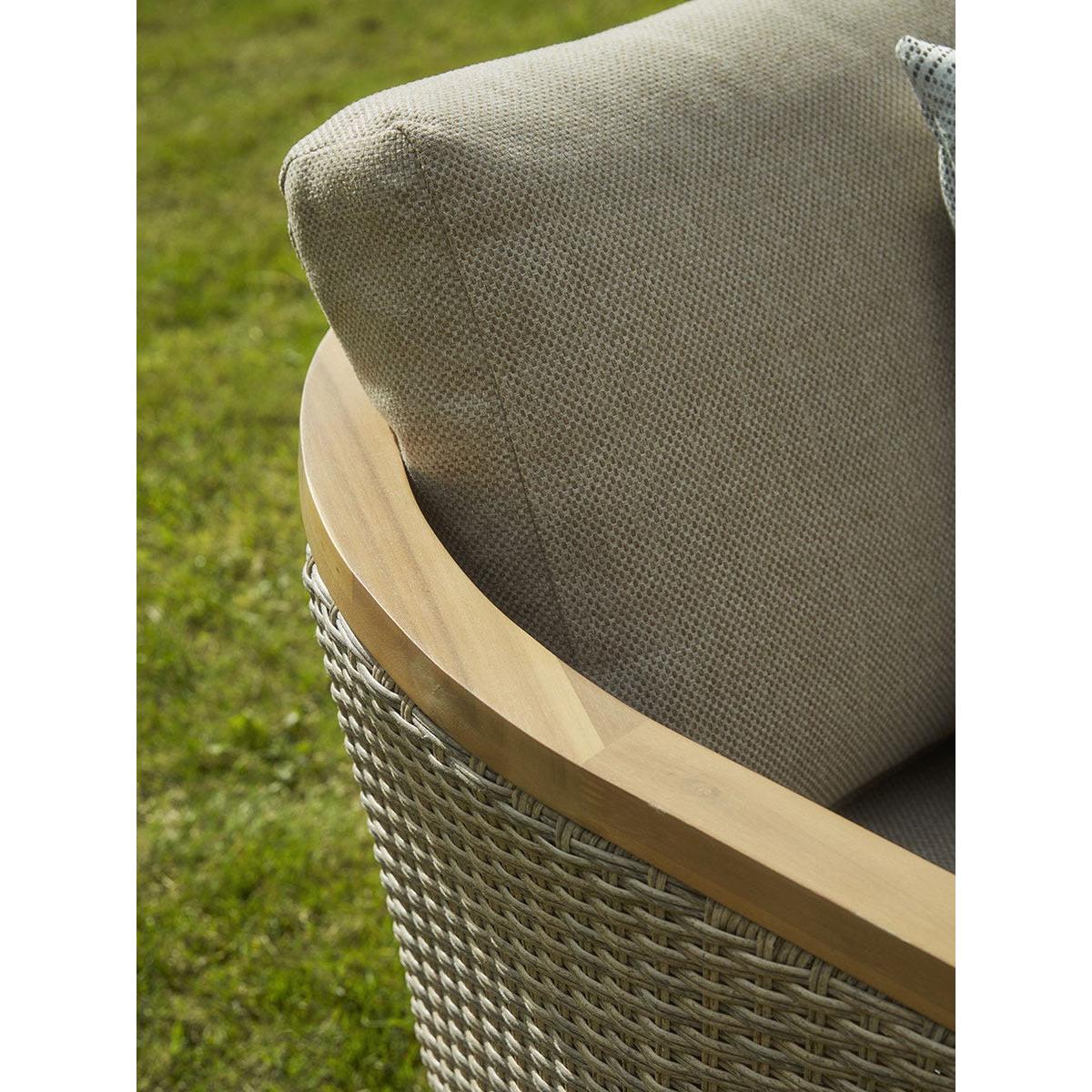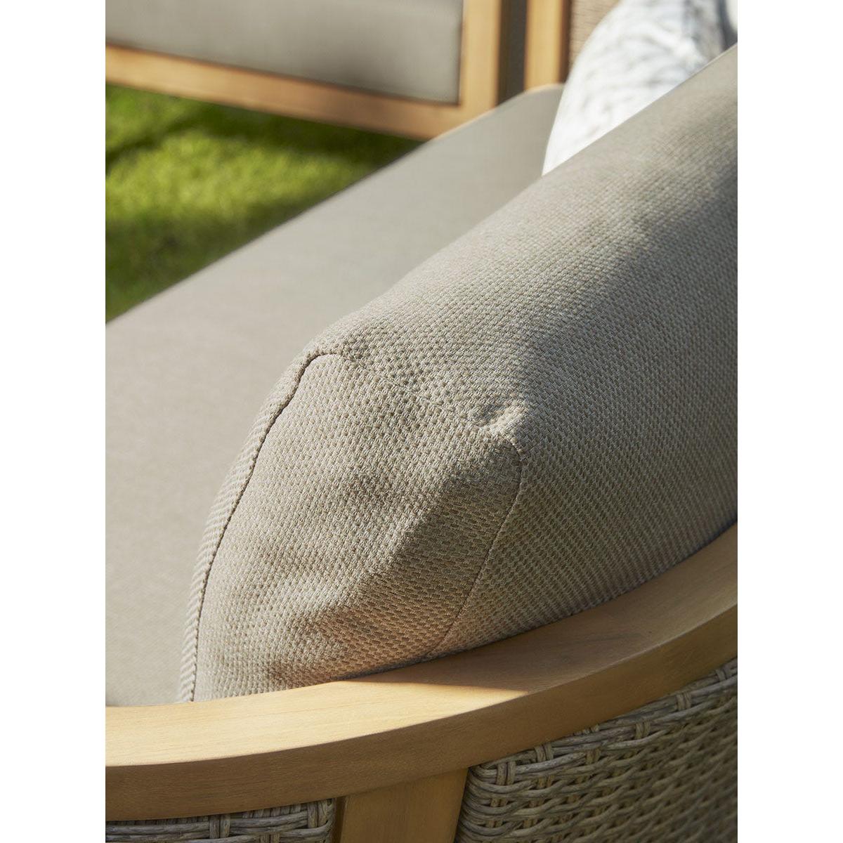 Extend your living space from the home to your garden with our Beaulieu Lounge Set. This garden furniture set features a cosy arrangement of a two seater sofa, two armchairs and a coffee table. Crafted from a warm acacia wood, the centre table sits at the perfect height against the chairs. A soft and tightly woven rattan covers the arms and back inviting a traditional look to the simple frame. Finished with full and plump neutral cushions, this lounge set creates the perfect place to get comfortable and enjoy a warm summers day with friends and family.