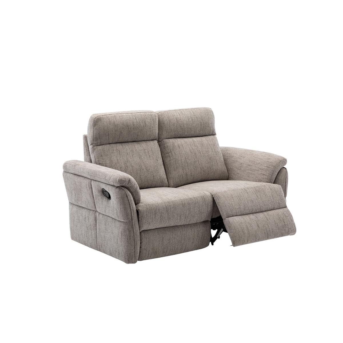 The perfect spot for unwinding at home, the Beaumont 2 Seater Sofa boasts plump cushioning on its backrest, armrest, and seat with a ratchet headrest to help you sink into relaxation. Featuring a manual recline on both seats and a 155° recline angle, this couch offers complete comfort. Upholstered in a neutrally toned fabric with a subtly textured weave, this settee is part of a coordinating living room furniture collection with a matching 3-seater sofa and armchair available.