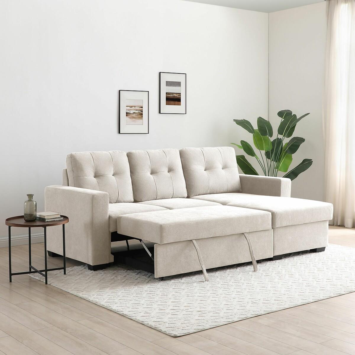 This 3-seater corner sofa bed is made for modern UK living--where comfort, space-saving, and style go hand in hand. It features a fuss-free pull-out and pop-up mechanism that makes switching from sofa to bed smooth and simple. Ideal for last-minute guests or cosy nights in. Upholstered in a subtle textured weave with a smart tufted back, it looks as good as it feels. The generous sleeping area is perfect for stretching out, while hidden storage under the chaise keeps things neat and tidy. With pocket-sprung and foam-filled seats, it’s the kind of comfort you won’t want to get up from. A great choice for anyone looking for a stylish yet practical sofa bed in the UK.Product details• Upholstered in textured weave fabric• Sleeps 2• Comfort level: Medium• Full assembly required• Wipe clean with a soft cloth• 12 months maufacturers warranty. Product Composition - Fabric - 100% Polyester. Seat Filling - Foam. Back Filling - Polyester Fibre. Product Dimensions - 236 cm x 161 cm x 95 cm , Weight 95 KGSeat Height: 49 cm. Back Height: 52 cm. Seat Width between arms: 202 cm. Seat Depth: 55 cm Corner Depth: 122 cm. Arm Height: 65 cm Clearance to floor: 5 cm. Sleeping Area: 248cm Parcel 1 Packaged Dimensions - 131 cm x 94 cm x 64 cm, Weight 63 KGParcel 2 Packaged Dimensions - 160 cm x 84 cm x 45 cm, Weight 48 KGThis product will be dispatched by one of our trusted suppliers. You’ll be contacted by their selected courier about your delivery. KYOTO01