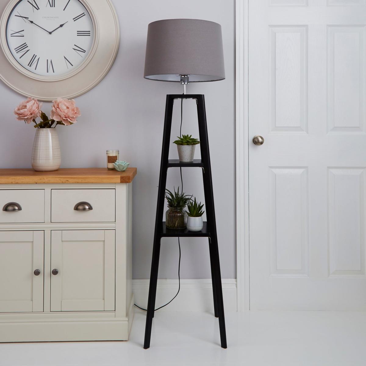Add a contemporary element to your décor with the stunning Beaumont Floor Lamp, constructed with a shelving design and a strong base. This floor lamp also features a matt wood finish with chrome detailing, making it a perfect piece for any home style. This floor lamp comes with a 2 year guarantee. Click. Here. To view our terms and conditions.