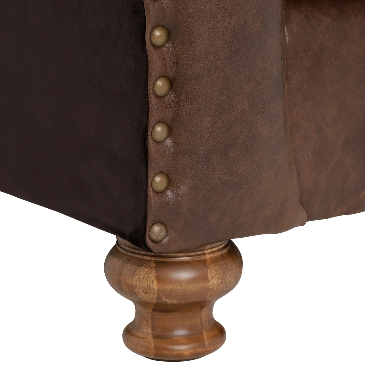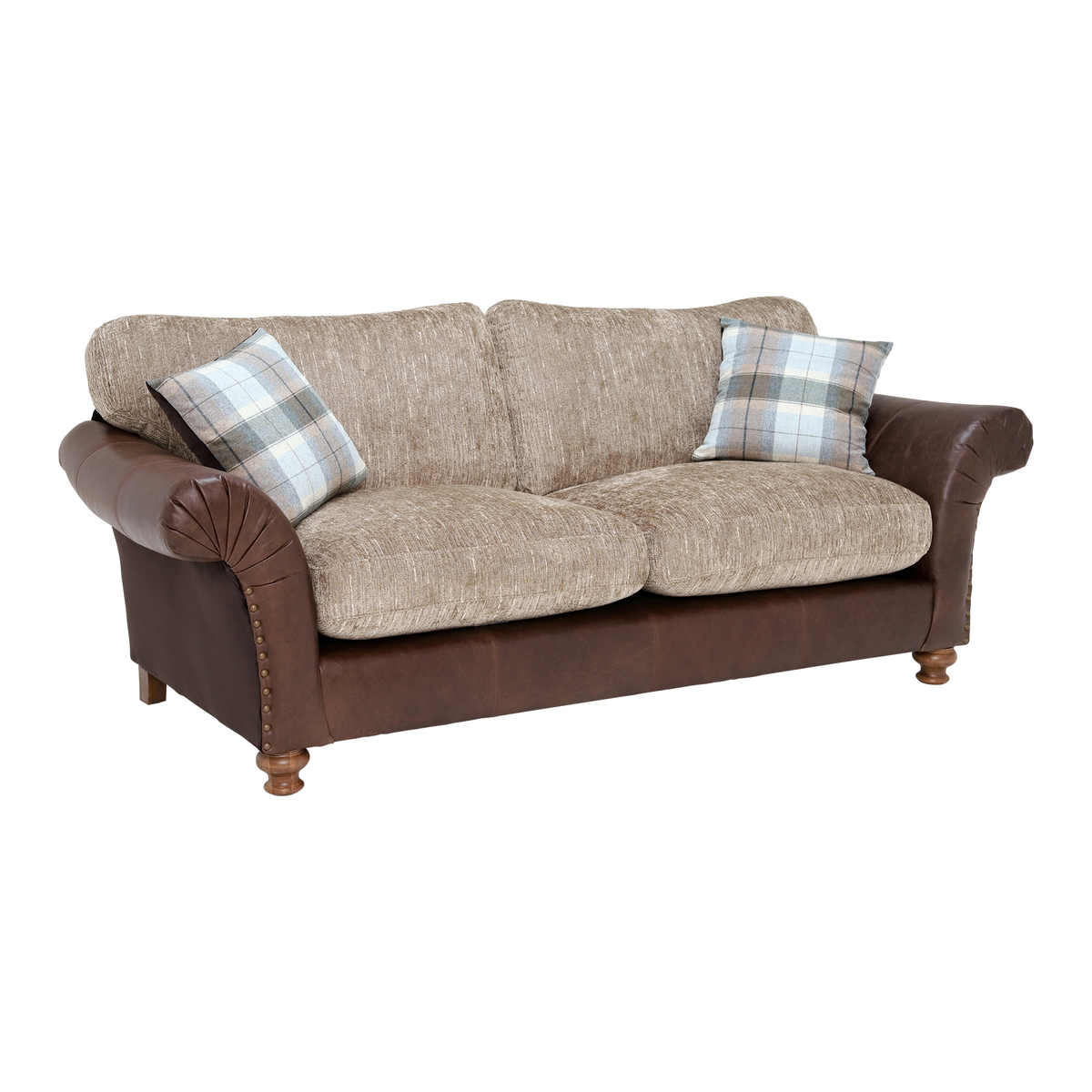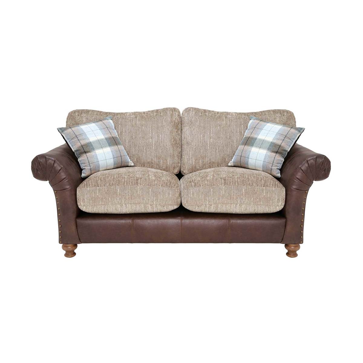 Partly upholstered in a sophisticated brown leather of your choice, the Beaumont 2 seater sofa is given a soft touch with cosy fabric seat cushions and complementary scatters. An incredibly comfortable blend of foam and fibre filling provides the perfect level of support, so you can settle down snugly for the long haul. Delivering just as well in the looks department, Beaumont features elegant stud detailing, pleated arms and traditional turned wood feet. Suitable for both classic and contemporary living rooms, this sofa will create a stylish and relaxing space for many years to come. Customise with your preferred colours and finishes to make it your own. Matching footstool, chair and sofas also available.