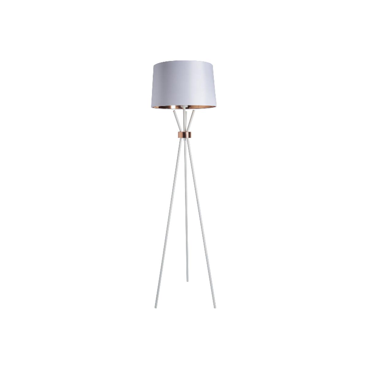 This white and copper floor lamp is a stylish yet versatile piece that works well in both modern and minimalist interiors, adding a touch of warmth and sophistication. I love how the copper accents give it a contemporary edge, making it a great statement piece without overpowering the space. It suits living rooms, bedrooms, or home offices where a soft, ambient light is desired. Practical styling tips include pairing it with neutral or textured soft furnishings to highlight its sleek design, or using it to balance bolder colour schemes. Position it next to a cosy armchair or sofa to create a functional reading nook, and consider keeping the surrounding décor simple to let the lamp truly stand out.