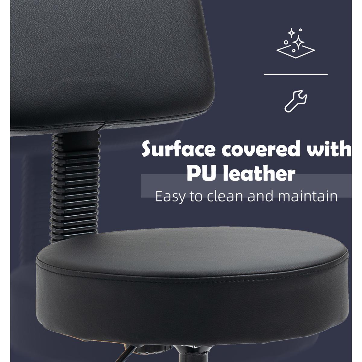 This saddle chair from HOMCOM, puts you at just the right height for whatever the task is at hand: painting, styling hair, massage and more - with the five wheels, this hairdressing chair allows you to move freely side-to-side, as your body moves naturally. The firm curved back and cushioned seat gives you the comfort needed for long sitting periods, with the steel frame offering full support. Height adjustable between 72 cm and 84 cm for different needs.