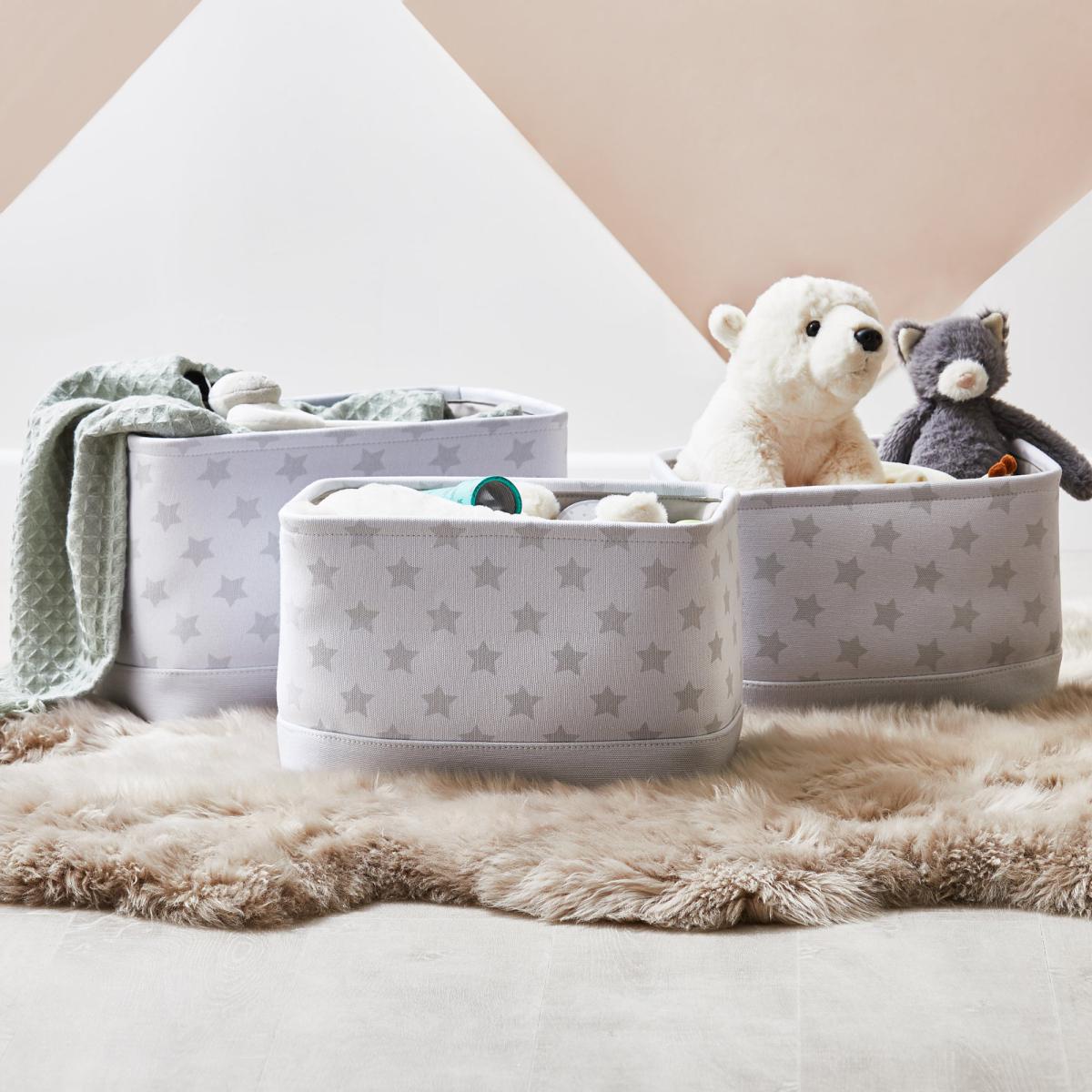Beautiful Basics Grey Star Patterned Pack of Three Storage Baskets Grey