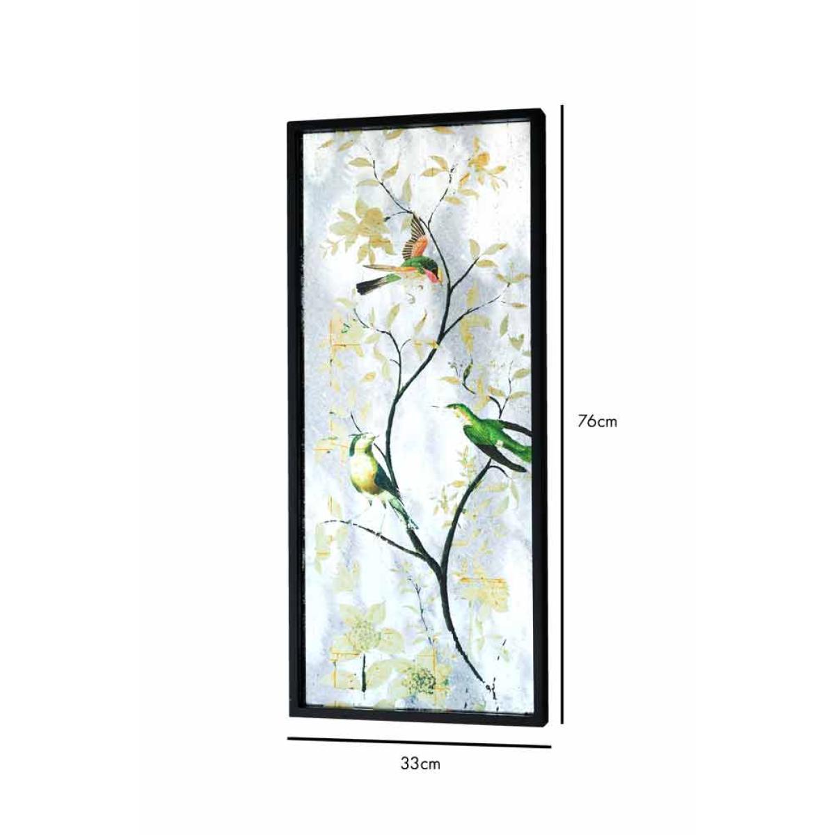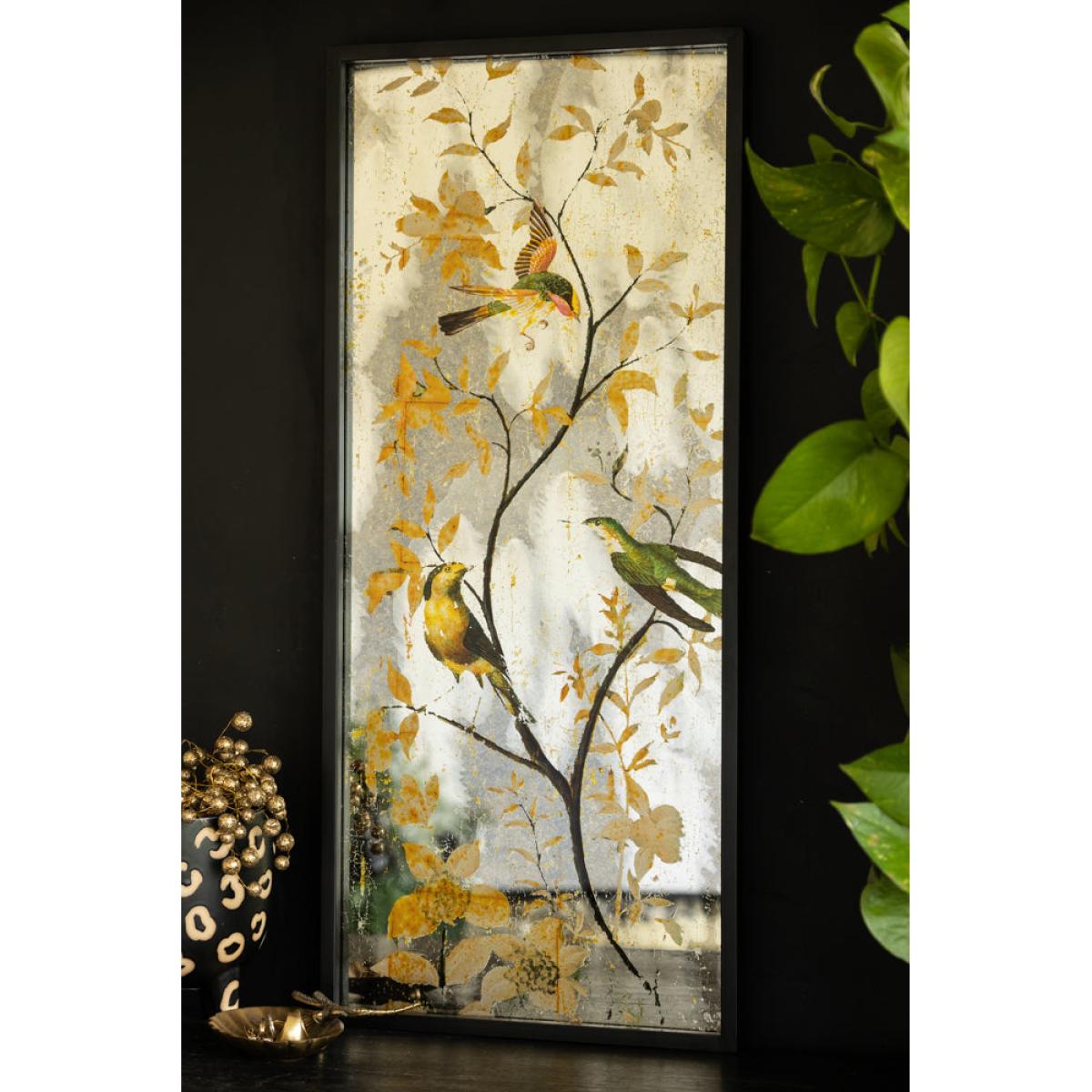 About The Beautiful Bird Wall Art MirrorThe Beautiful Bird Wall Art Mirror is a gorgeous design that introduces statement style to any corner of the home. Made from glass with a classic black frame, the long mirror is designed with an antique, foxed finish and a beautiful pattern of flowers and birds. Measuring H76cm, the decoration wall mirror design can be styled on the wall or leaned against a shelf to create impact. Why We Think You’ll Love The Beautiful Bird Wall MirrorArtwork comes in many different forms and we love unique pieces like the Beautiful Bird Wall Mirror that reinvent your ideas of traditional wall art. Bold and effortlessly chic, the antique mirror style is complemented by colourful songbirds, delicate leaves and beautiful flowers in rich yellows and greens. From the calming imagery of birds resting on branches to the vivid golden colour palette, this glamorous decoration wall mirror is destined to be adored. How To Style The Bird Decoration Wall MirrorThe Beautiful Bird Wall Art Mirror creates a fabulous feature in any room of the home. We recommend displaying the long wall mirror in pride of place in your living room, hallway or bedroom as a hero art piece that will reflect the natural light in the room. Finally, be sure to style the wall art mirror with plenty of houseplants to celebrate the natural theme!