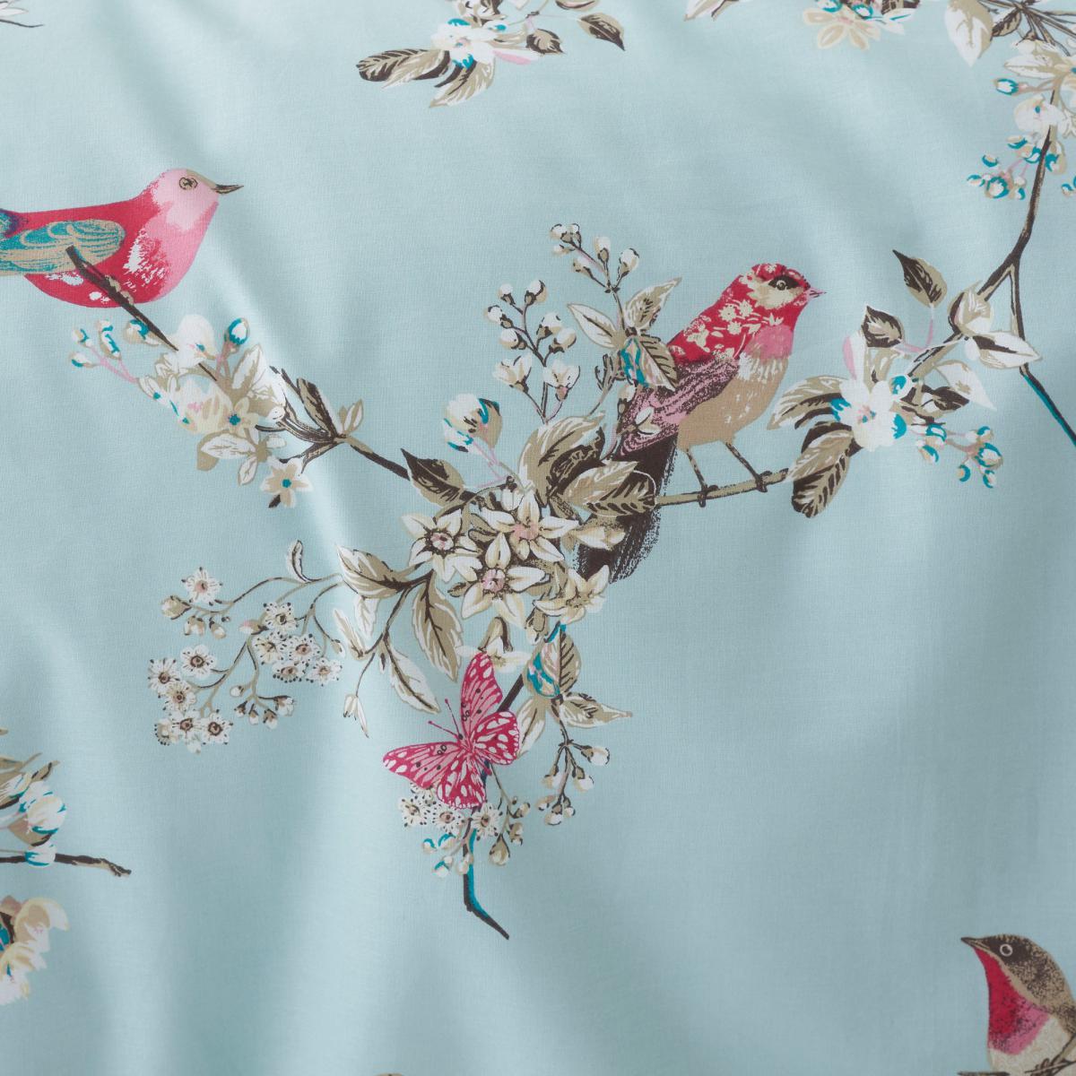Featuring a bird and floral printed design in pink and white with piped edging, this duck-egg blue duvet cover set is crafted from soft machine washable polycotton. Pillowcase(s) included. Shop the coordinating. Curtains. And. Pillowcase.