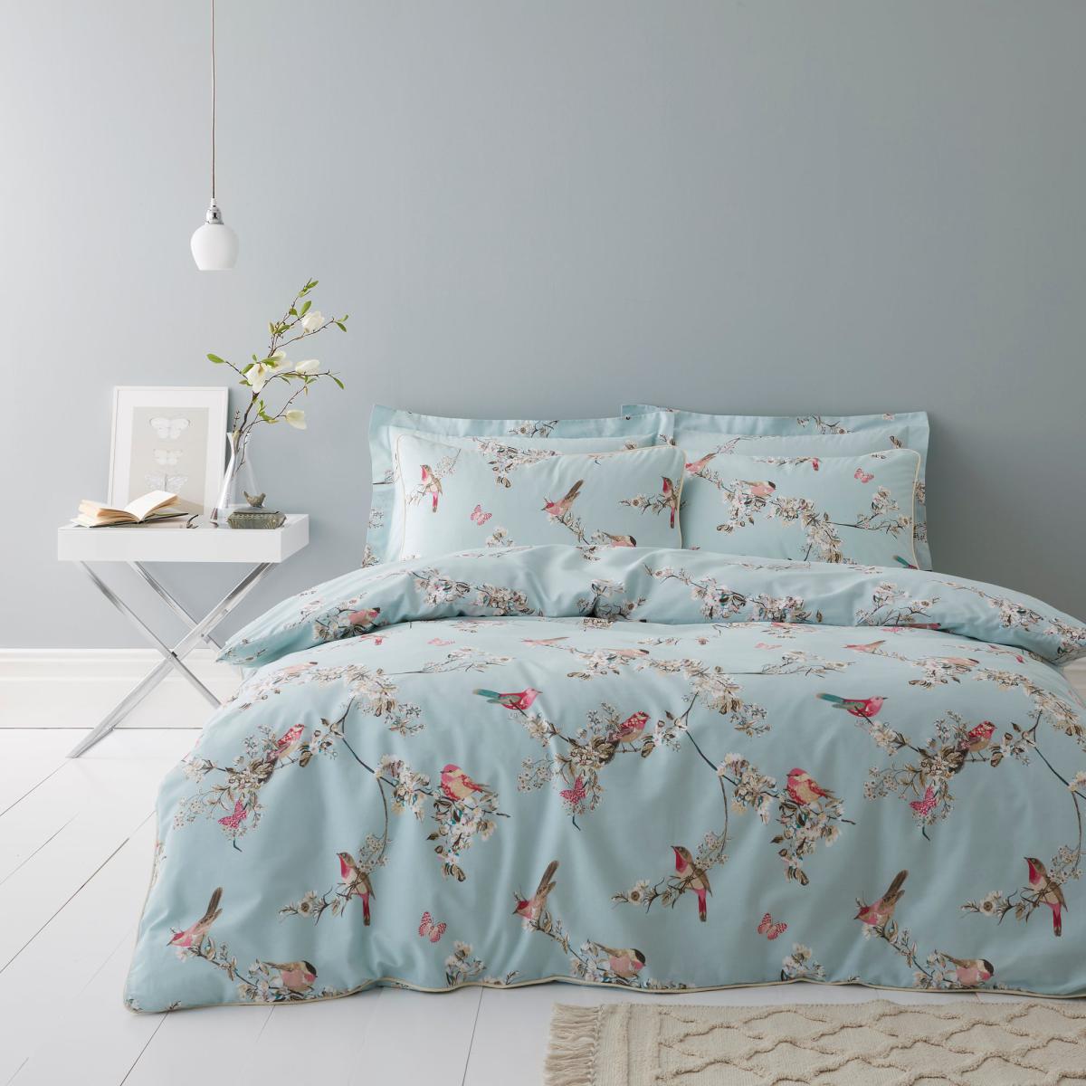 Beautiful Birds Duck-Egg Duvet Cover and Pillowcase Set Duck Egg Blue