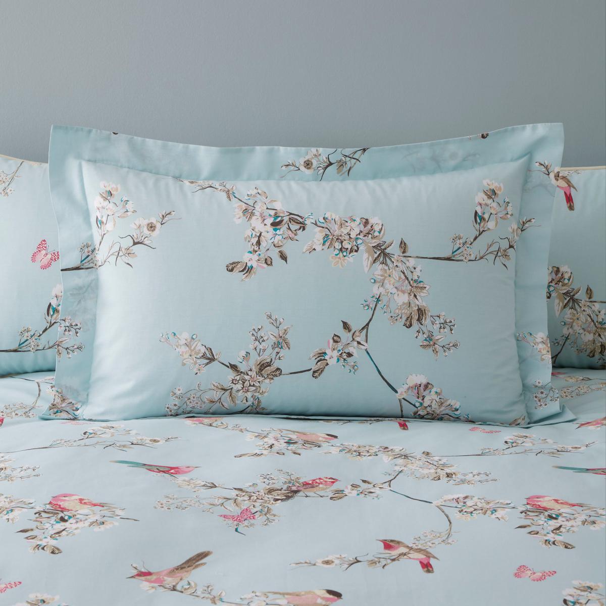 Beautiful Birds Duck-Egg Oxford Pillowcase Duck Egg Blue