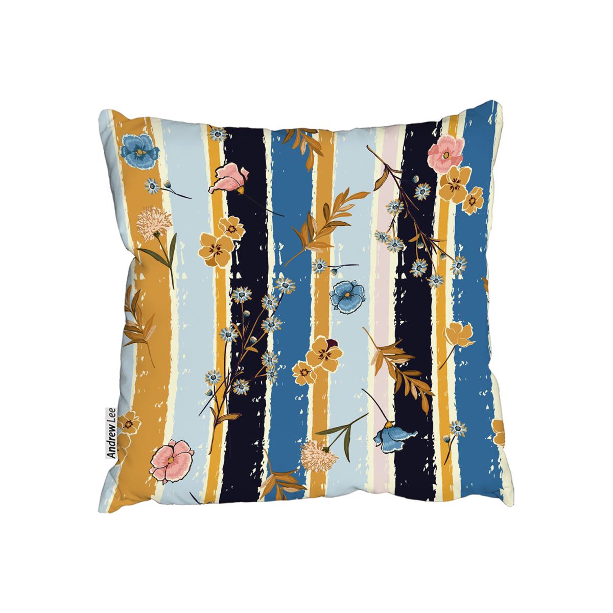 Beautiful Meadow Flowers On Candy Colorful Brush Stripe Outdoor Cushion - Blue / 45cm