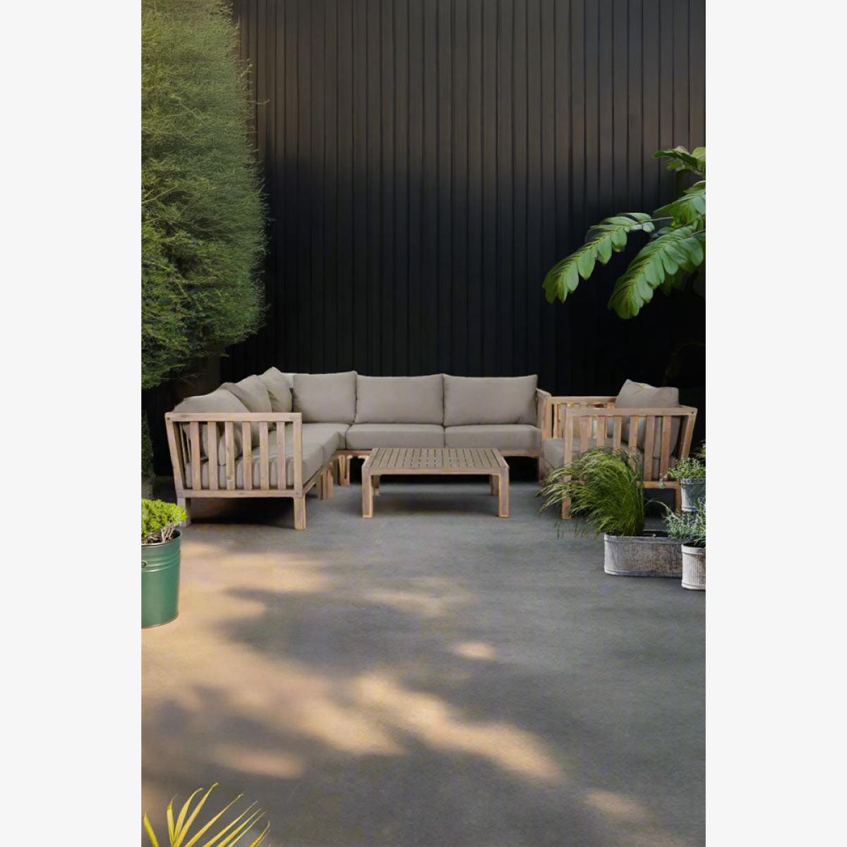 Meet our outdoor corner sofa, the Beautiful Outdoor Corner Sofa & Table Set – made for everything from lazy coastal mornings to long countryside evenings. Crafted from acacia wood with a soft whitewash finish, this outdoor sofa set brings all the charm without trying too hard. It’s got that relaxed, sun-faded look that partners perfectly with any garden. And this garden sofa set is not just a pretty face – it’s generously sized, including a comfy corner sofa, plus an armchair and a matching coffee table. So there’s loads of space for morning coffees or afternoon catchups with the whole gang. This large outdoor couch set is classic, cosy and completely made for lounging. - Beautiful Outdoor Corner Sofa & Table Set - Materials: Acacia Wood & Polyester Cushions - 2-Seater Corner Sofa Measures: H67cm x W164cm x D75cm, Back Cushion: H18cm x W80cm x D42cm, Seat Cushion: H15cm x W78.5cm x D68cm - 3-Seater Corner Sofa Measures:H67cm x W239cm x D75cm, Large Back Cushion: H18cm x W76cm x D42cm, Small Back Cushion: H18cm x W56cm x D42cm, Seat Cushion: H15cm x W74cm x D68cm - Armchair Measures: H67cm x W99cm x D75cm, Back Cushion: H18cm x W88cm x D42cm, Seat Cushion: H15cm x W84cm x D69cm - Coffee Table Measures: H30cm x W90cm x D90cm - Suitable for indoor and outdoor use - Cushion covers are removable and washable at